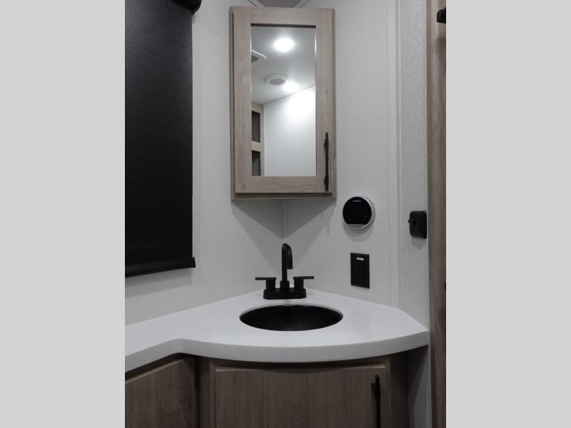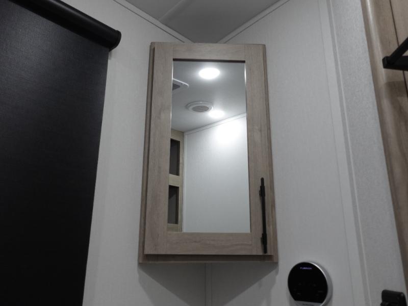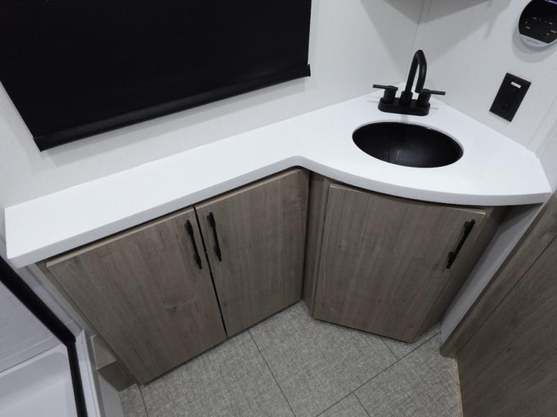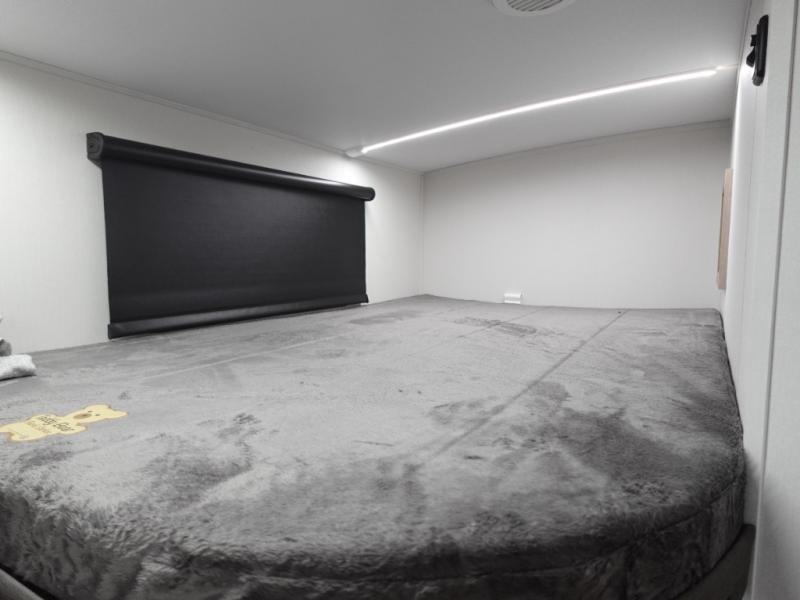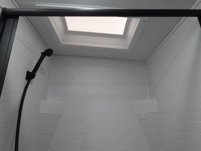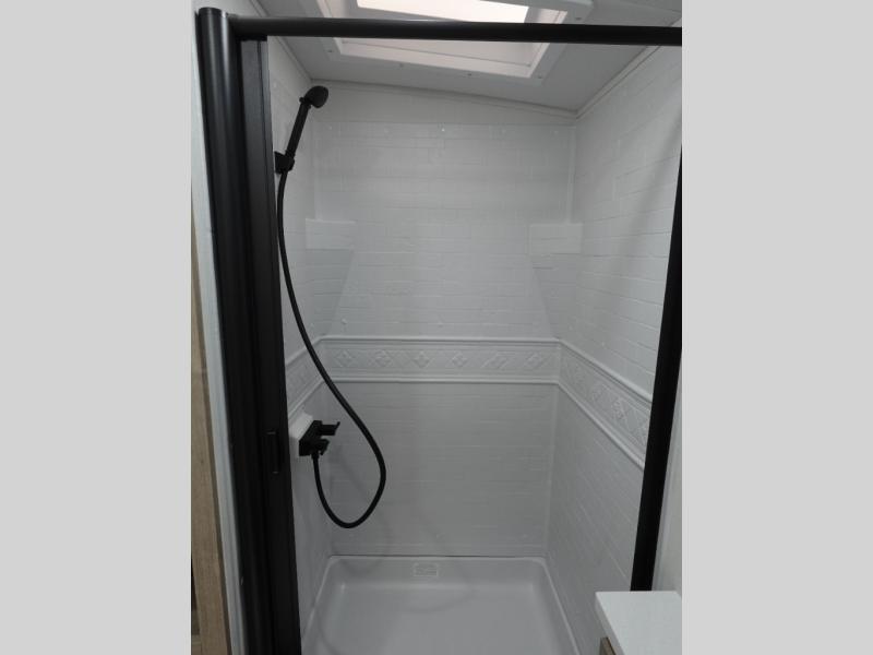 What I liked most: Bunk area area lifts up for additional storage which is very unique. Place for shoes. The bathroom shower surround has a brick molded design look.