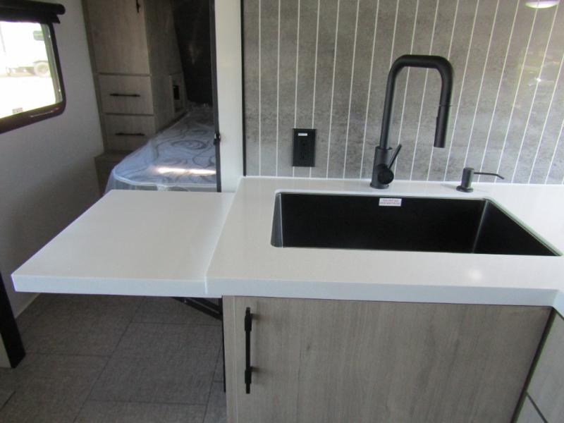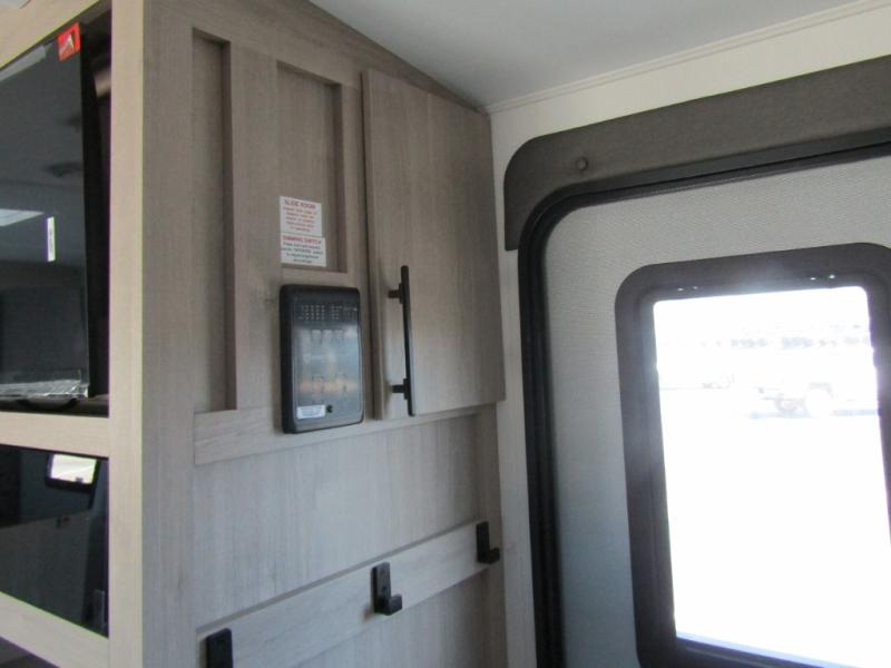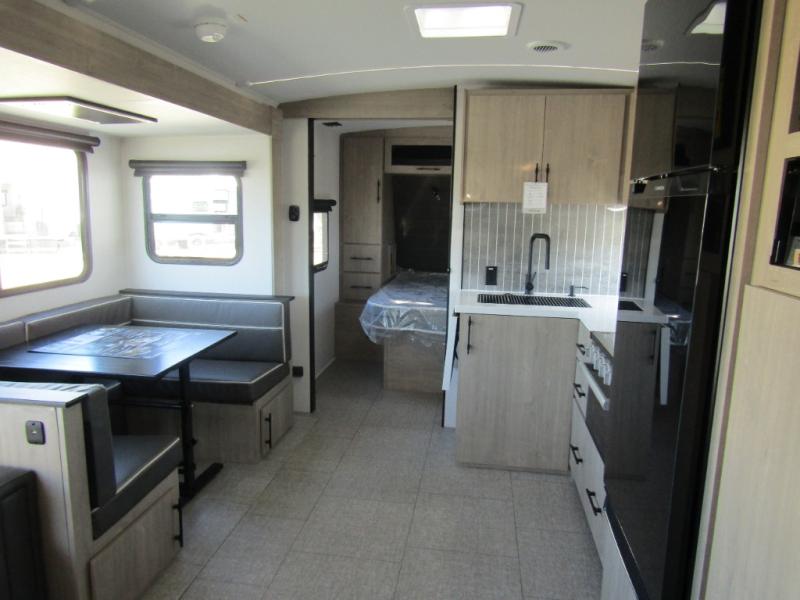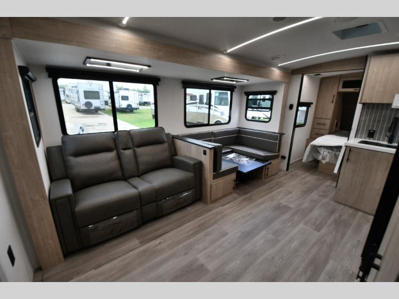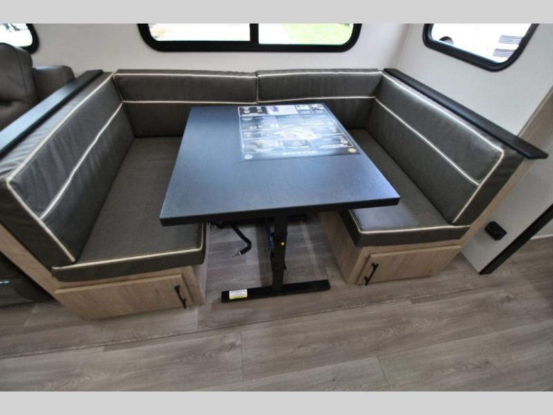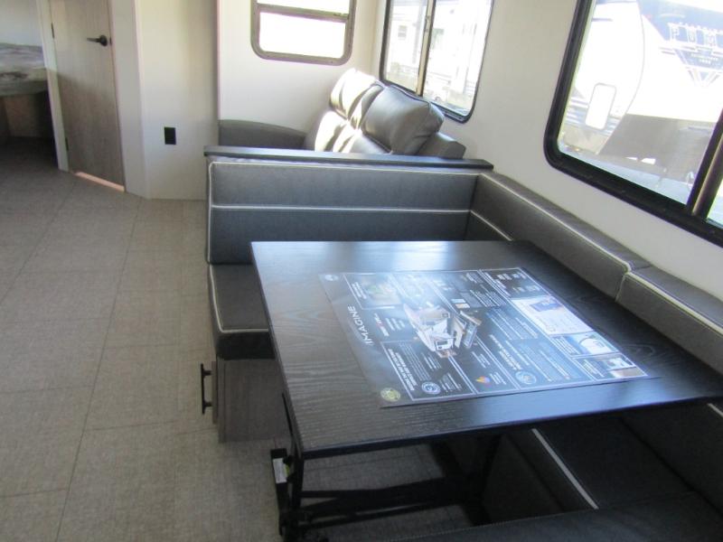 Adventure awaits with the Grand Design Imagine 2800BH, a travel trailer built to keep up with your family’s active lifestyle. The rear double-size bunks provide privacy and comfort for the kids, while the front private bedroom with a queen bed ensures a restful retreat. In the main living area, you’ll find a U-shaped booth dinette and upgraded theater seating perfect for meals, game nights, or movie nights on the entertainment system. Dual entry doors make coming and going easy, while the outdoor kitchen with griddle, refrigerator, and flip-up countertop keeps the fun outside under the 19’ power awning.