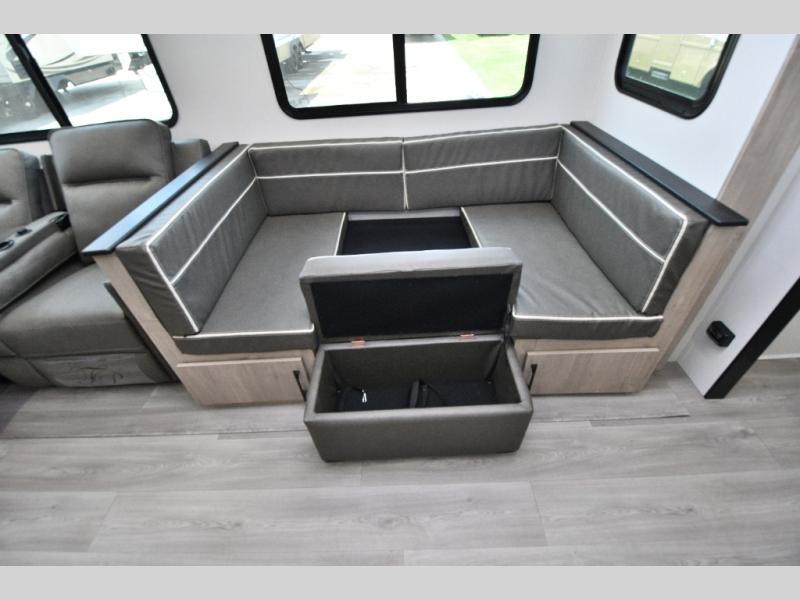 Peace of Mind Package · Ultimate Power Package · Four Seasons Protection Package · Solar Package · Goodyear Tires · SafeRide RV Roadside Assistance · ABS Axle Assembly w/Sway Control · 50 Amp Service - Wired & Framed for 2nd A/C · 2nd A/C Ducted · Booth Dinette · Theater Seating IPO Tri-Fold Sofa · RVIA Seal