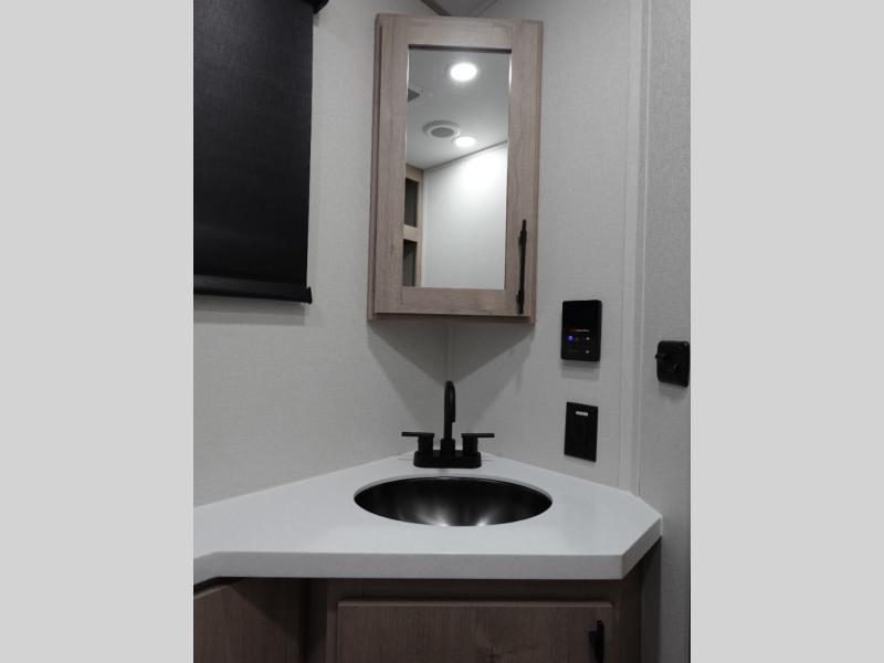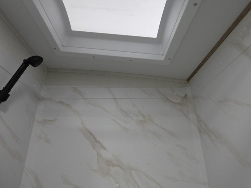 What I liked most: Bunk area area lifts up for additional storage which is very unique. Place for shoes. The bathroom shower surround has a brick molded design look.