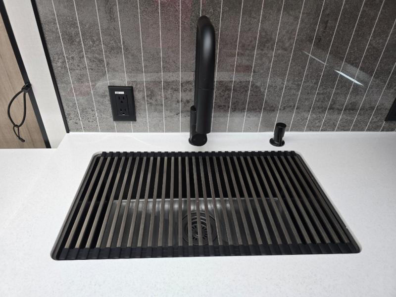 What I liked most: Bunk area area lifts up for additional storage which is very unique. Place for shoes. The bathroom shower surround has a brick molded design look.