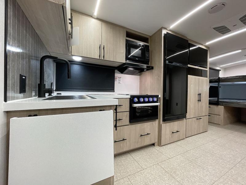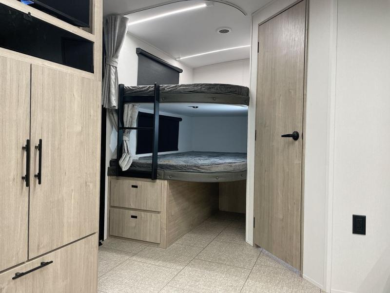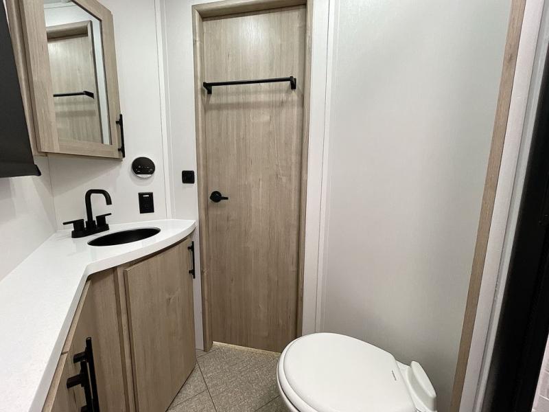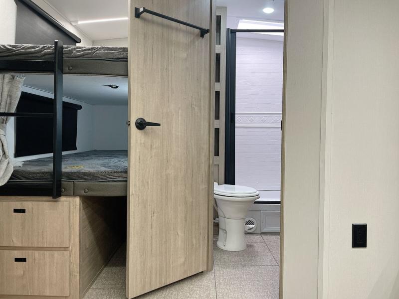 What I liked most: Bunk area area lifts up for additional storage which is very unique. Place for shoes. The bathroom shower surround has a brick molded design look.
