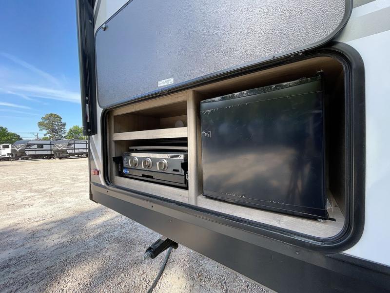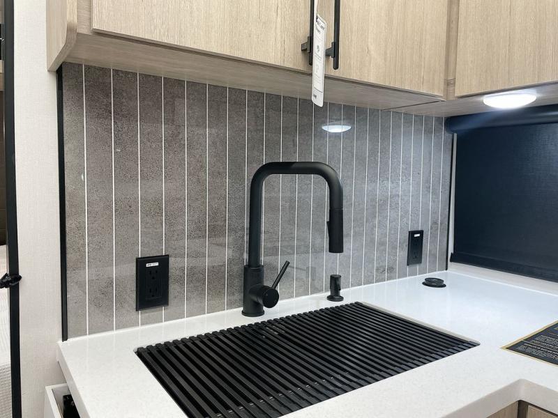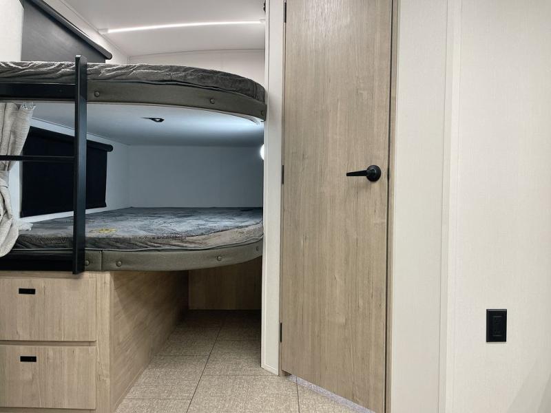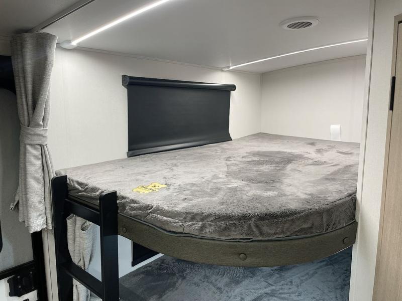 Where will you go with this Imagine travel trailer? The possibilities are endless! You can take your family on an exciting excursion because this trailer has enough sleeping space for everyone with a 60" x 80" queen bed in the private bedroom, a U-shaped dinette and tri-fold sofa in the main living area, and there is a set of 47" x 76" bunk beds with privacy curtains in the rear corner. You can come and go as you please with two entry doors, and the outdoor griddle and refrigerator will be fun to use when the weather is nice. The flip-up countertop extension will make it easier to prepare delicious home cooked meals and the shoe storage area helps to keep things neat and tidy.