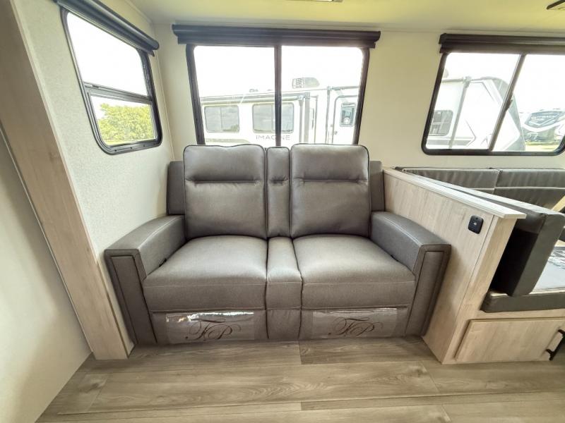 Where will you go with this Imagine travel trailer? The possibilities are endless! You can take your family on an exciting excursion because this trailer has enough sleeping space for everyone with a 60" x 80" queen bed in the private bedroom, a U-shaped dinette and tri-fold sofa in the main living area, and there is a set of 47" x 76" bunk beds with privacy curtains in the rear corner. You can come and go as you please with two entry doors, and the outdoor griddle and refrigerator will be fun to use when the weather is nice. The flip-up countertop extension will make it easier to prepare delicious home cooked meals and the shoe storage area helps to keep things neat and tidy.