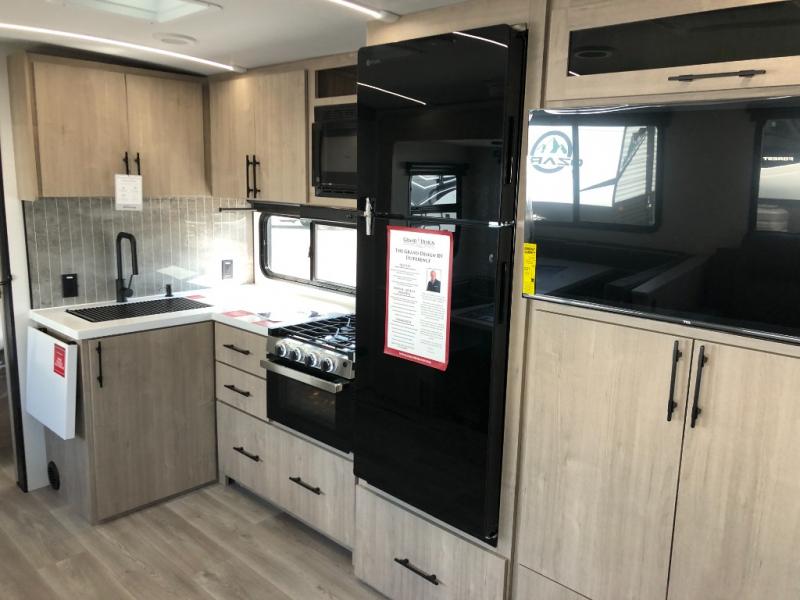 Just imagine leaving the world behind and secluding yourself away with your favorite people in your Grand Design Imagine travel trailer! The Imagine has been designed to enjoy extended season camping and includes a high-capacity furnace, a heated and enclosed underbelly with suspended tanks, a designated heat duct to the subfloor, and a high-density roof insulation with attic vent. You'll have maximum head room on the interior with 81" radius ceilings, and large panoramic windows to let in natural lighting. The exclusive drop-frame pass-through storage compartment is going to allow you to bring along lots of equipment, and the universal docking station is an all-in-one location for utilities and hook-ups. You'll also have oversized tank capacities so that you can fill and empty your tanks less often.
