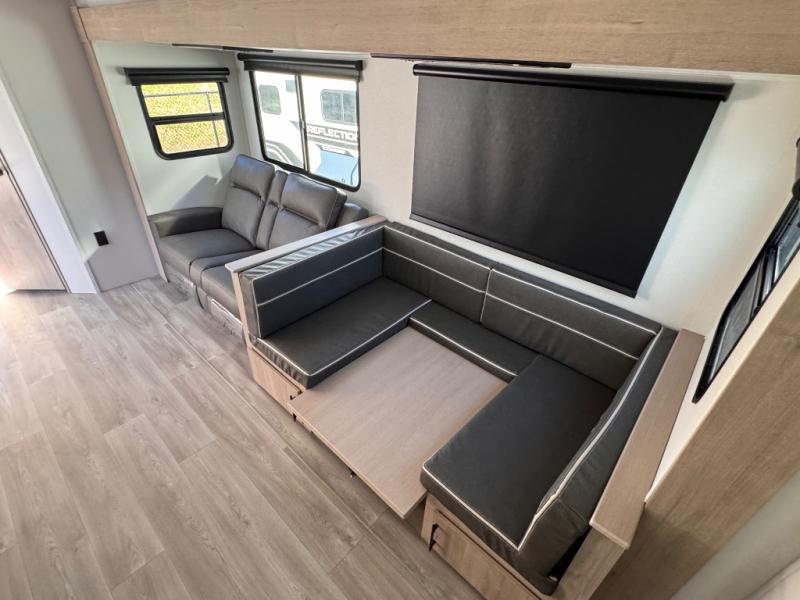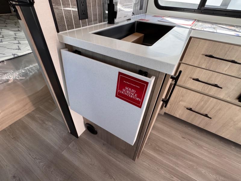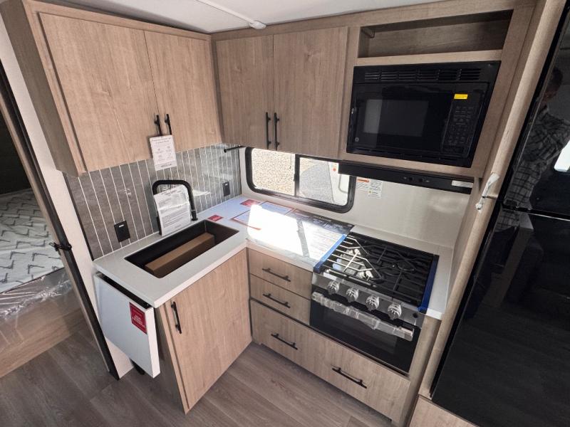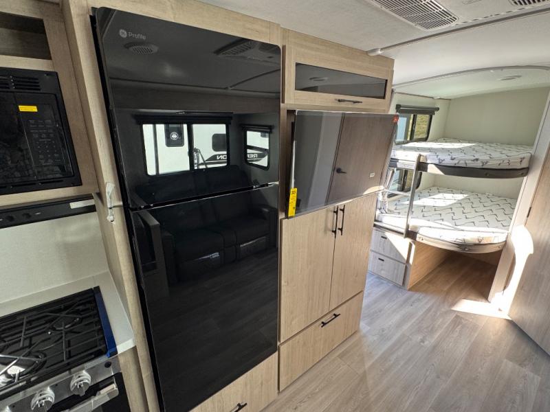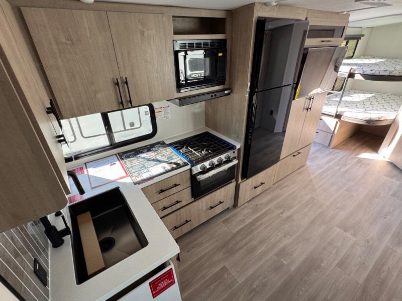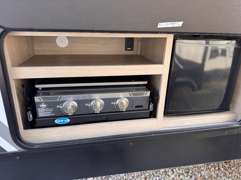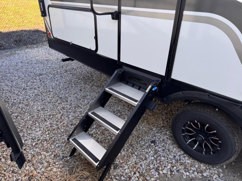 Where will you go with this Imagine travel trailer? The possibilities are endless! You can take your family on an exciting excursion because this trailer has enough sleeping space for everyone with a 60" x 80" queen bed in the private bedroom, a U-shaped dinette and tri-fold sofa in the main living area, and there is a set of 47" x 76" bunk beds with privacy curtains in the rear corner. You can come and go as you please with two entry doors, and the outdoor griddle and refrigerator will be fun to use when the weather is nice. The flip-up countertop extension will make it easier to prepare delicious home cooked meals and the shoe storage area helps to keep things neat and tidy.