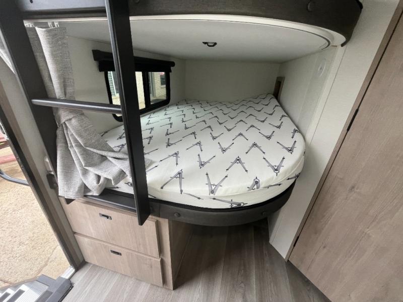 What I liked most: Bunk area area lifts up for additional storage which is very unique. Place for shoes. The bathroom shower surround has a brick molded design look.