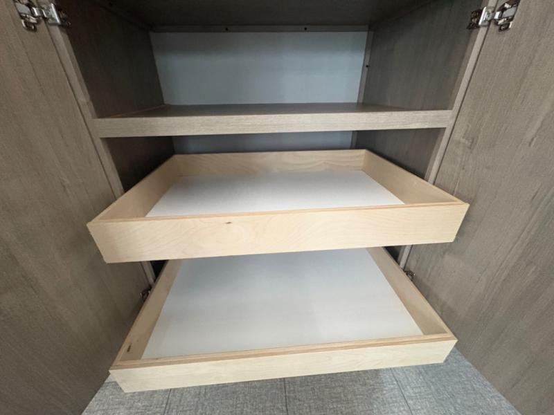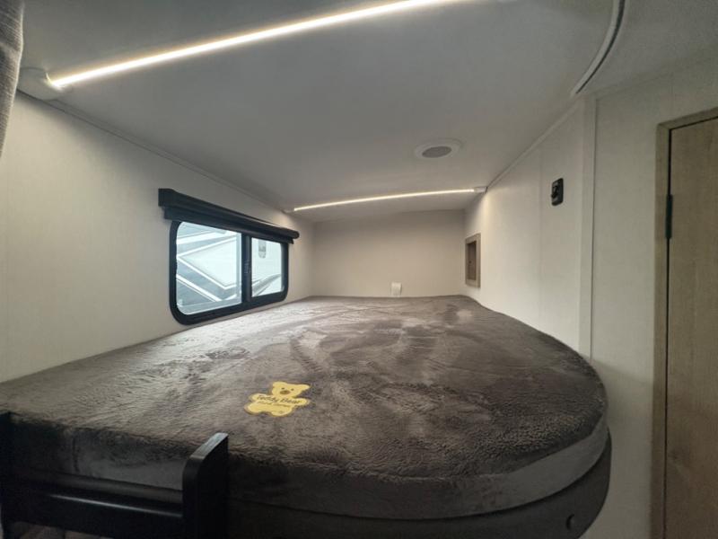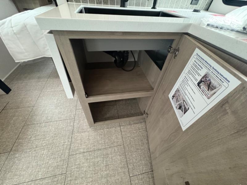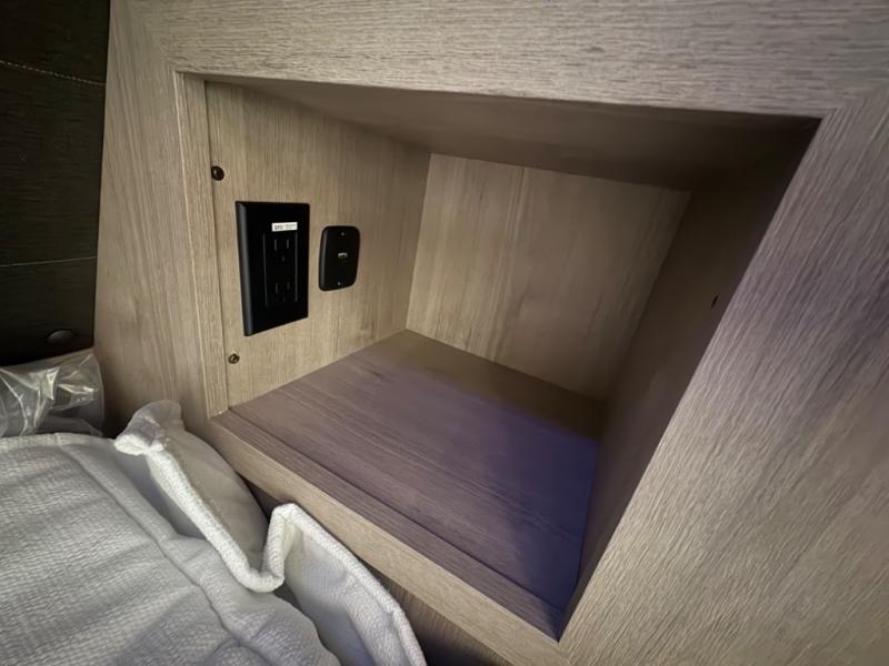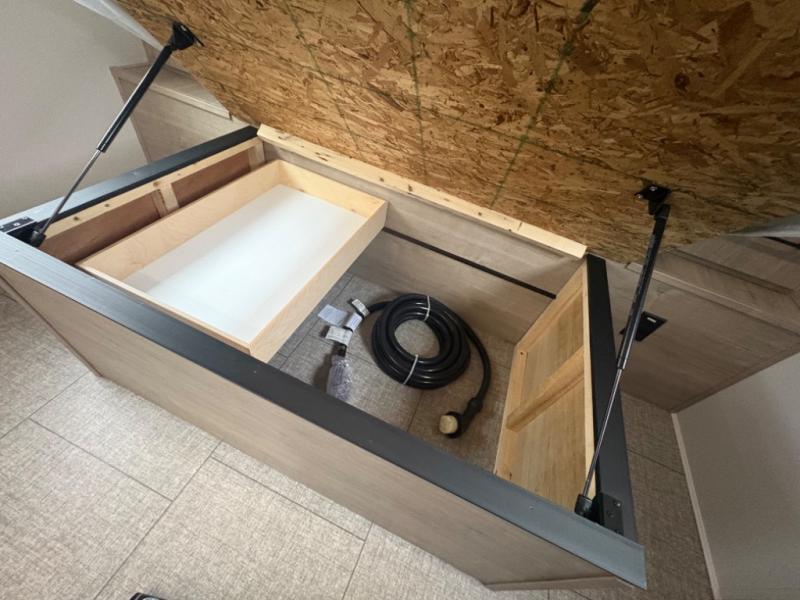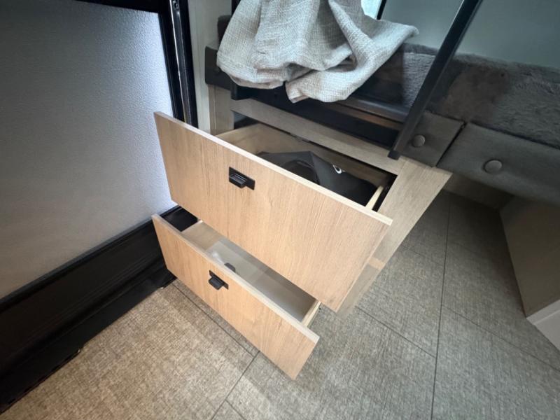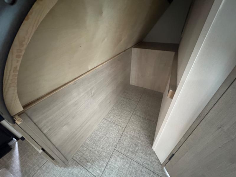 What I liked most: Bunk area area lifts up for additional storage which is very unique. Place for shoes. The bathroom shower surround has a brick molded design look.