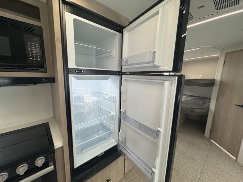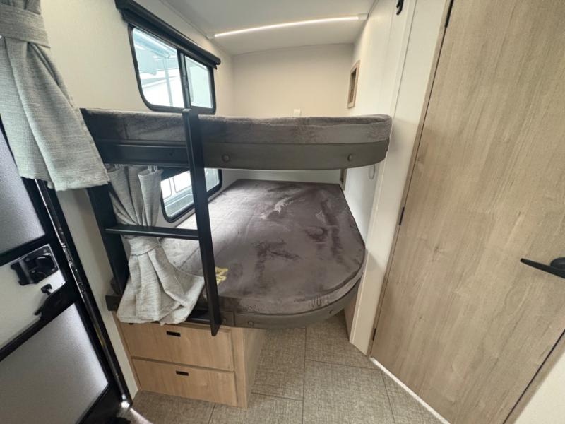 Where will you go with this Imagine travel trailer? The possibilities are endless! You can take your family on an exciting excursion because this trailer has enough sleeping space for everyone with a 60" x 80" queen bed in the private bedroom, a U-shaped dinette and tri-fold sofa in the main living area, and there is a set of 47" x 76" bunk beds with privacy curtains in the rear corner. You can come and go as you please with two entry doors, and the outdoor griddle and refrigerator will be fun to use when the weather is nice. The flip-up countertop extension will make it easier to prepare delicious home cooked meals and the shoe storage area helps to keep things neat and tidy.