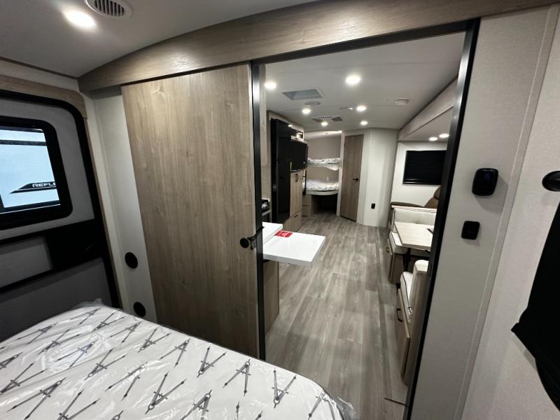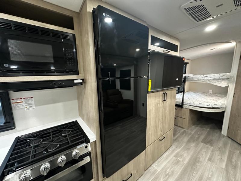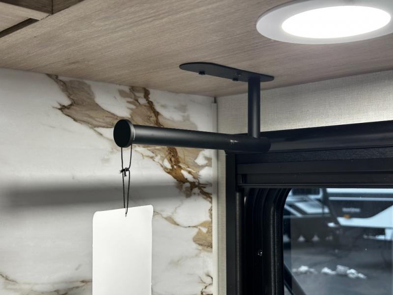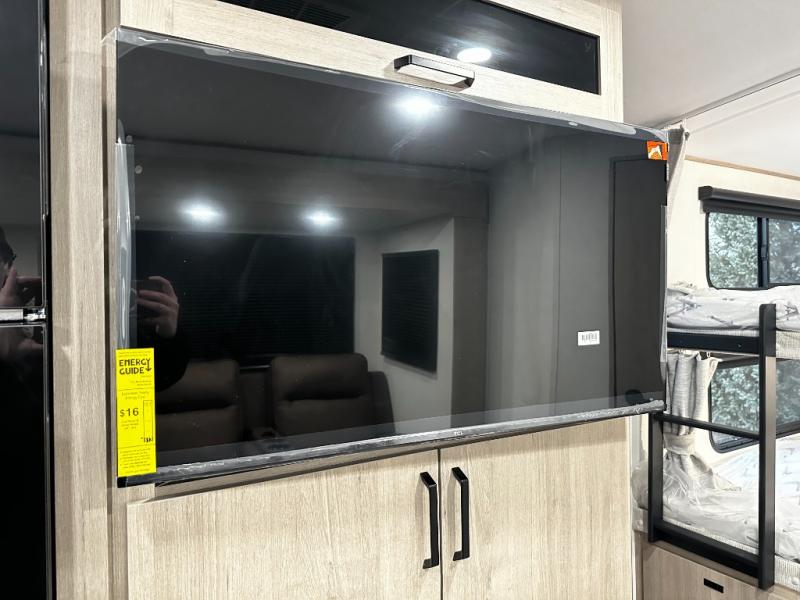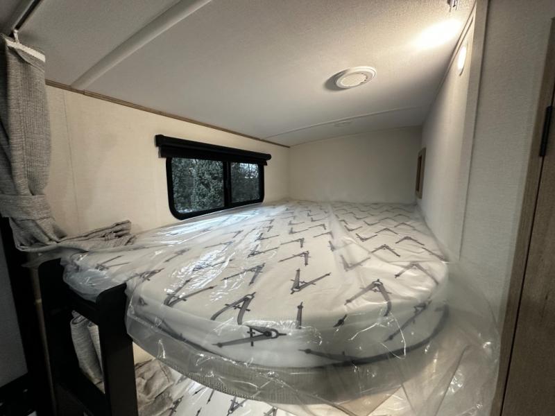 Step inside and you’re greeted with a family-friendly layout that sleeps up to ten, making it ideal for larger groups or multi-generation travel. At the front, enjoy a private bedroom with a residential-style 60" x 80" queen bed and sliding doors for restful privacy after a day of exploring the outdoors. At the rear, double-size bunk beds with privacy curtains provide cozy sleeping quarters perfect for kids, guests, or even extra storage for bulky gear.