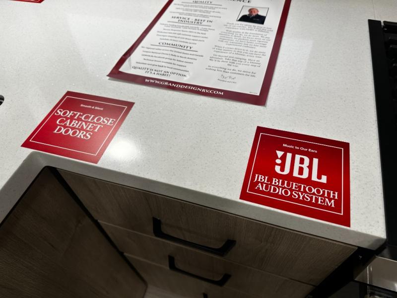 What I liked most: Bunk area area lifts up for additional storage which is very unique. Place for shoes. The bathroom shower surround has a brick molded design look.