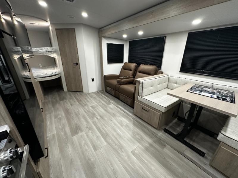• Family-centric design: Sleeps up to 10 with double-size bunk beds, dinette, sofa, and queen bedroom.