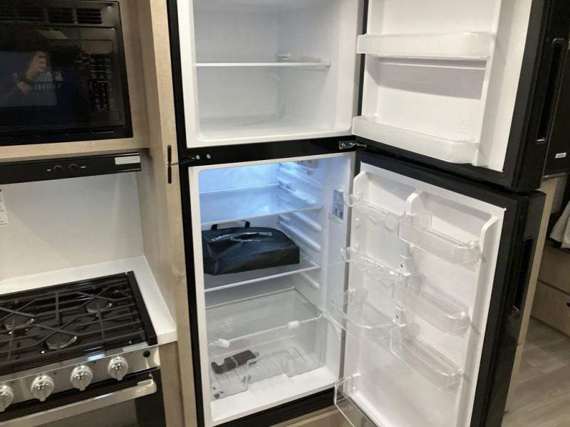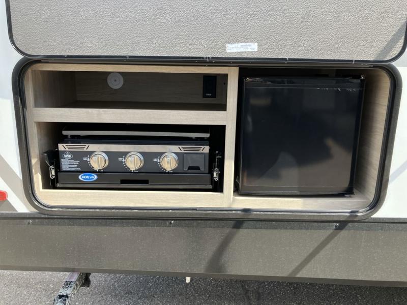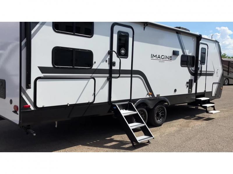 Where will you go with this Imagine travel trailer? The possibilities are endless! You can take your family on an exciting excursion because this trailer has enough sleeping space for everyone with a 60" x 80" queen bed in the private bedroom, a U-shaped dinette and tri-fold sofa in the main living area, and there is a set of 47" x 76" bunk beds with privacy curtains in the rear corner. You can come and go as you please with two entry doors, and the outdoor griddle and refrigerator will be fun to use when the weather is nice. The flip-up countertop extension will make it easier to prepare delicious home cooked meals and the shoe storage area helps to keep things neat and tidy.