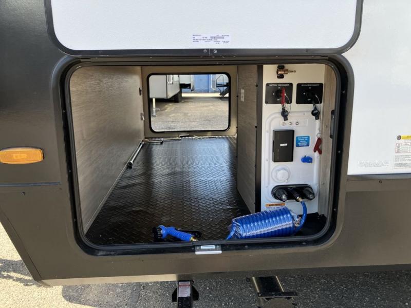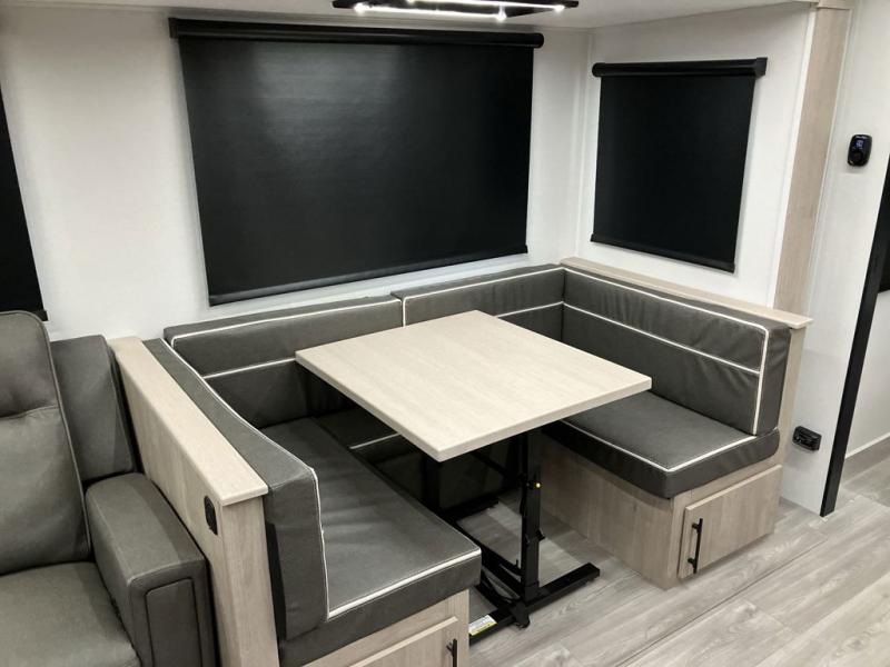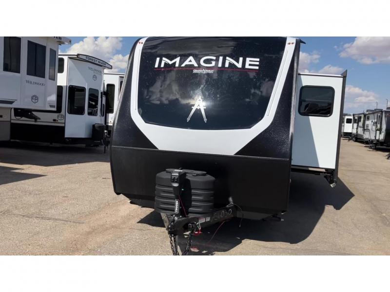 Just imagine leaving the world behind and secluding yourself away with your favorite people in your Grand Design Imagine travel trailer! The Imagine has been designed to enjoy camping and includes a high-capacity furnace, a heated and enclosed underbelly with suspended tanks, a designated heat duct to the subfloor, and a high-density roof insulation with attic vent. You'll have a large panoramic window to let natural lighting in and an adjustable Power Awning with LED Lights for those night gatherings. The exclusive drop-frame pass-through storage compartment is going to allow you to bring along lots of equipment, and the universal docking station is an all-in-one location for utilities and hook-ups. You'll also have oversized tank capacities so that you can fill and empty your tanks less often.