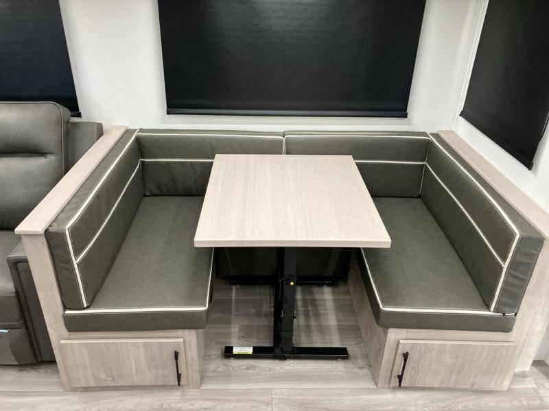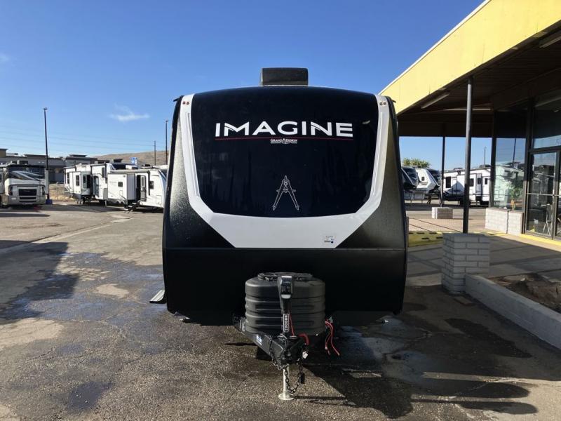 Just imagine leaving the world behind and secluding yourself away with your favorite people in your Grand Design Imagine travel trailer! The Imagine has been designed to enjoy camping and includes a high-capacity furnace, a heated and enclosed underbelly with suspended tanks, a designated heat duct to the subfloor, and a high-density roof insulation with attic vent. You'll have a large panoramic window to let natural lighting in and an adjustable Power Awning with LED Lights for those night gatherings. The exclusive drop-frame pass-through storage compartment is going to allow you to bring along lots of equipment, and the universal docking station is an all-in-one location for utilities and hook-ups. You'll also have oversized tank capacities so that you can fill and empty your tanks less often.