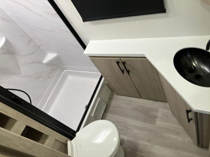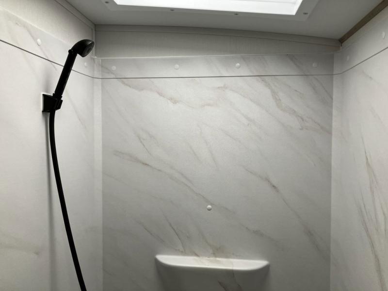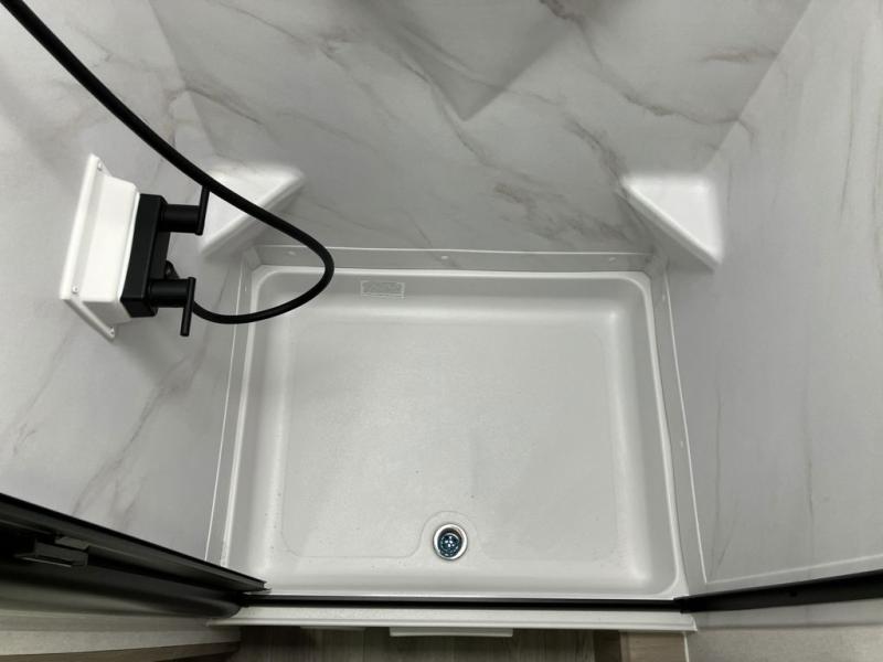 What I liked most: Bunk area area lifts up for additional storage which is very unique. Place for shoes. The bathroom shower surround has a brick molded design look.