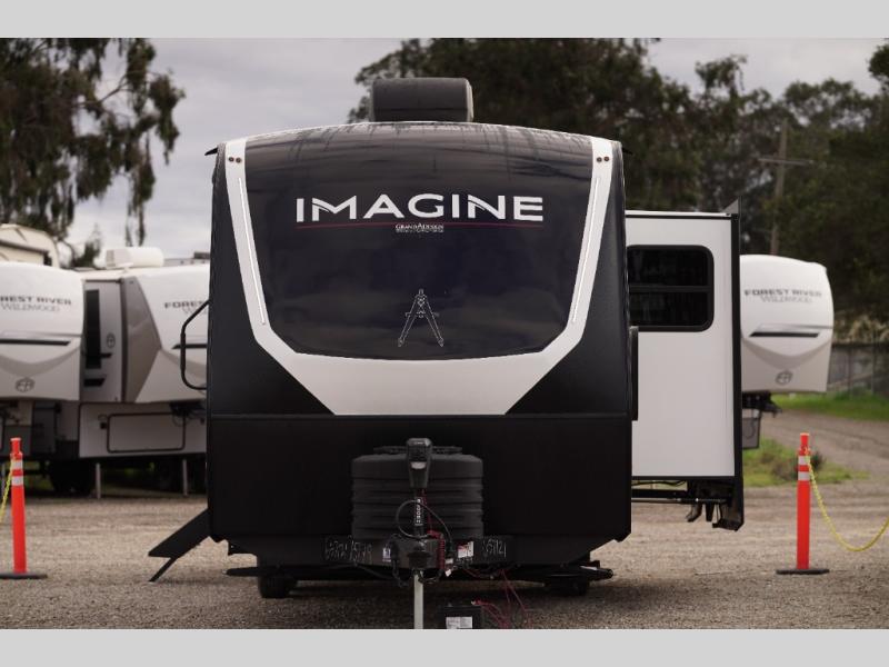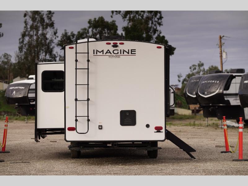 Just imagine leaving the world behind and secluding yourself away with your favorite people in your Grand Design Imagine travel trailer! The Imagine has been designed to enjoy camping and includes a high-capacity furnace, a heated and enclosed underbelly with suspended tanks, a designated heat duct to the subfloor, and a high-density roof insulation with attic vent. You'll have a large panoramic window to let natural lighting in and an adjustable Power Awning with LED Lights for those night gatherings. The exclusive drop-frame pass-through storage compartment is going to allow you to bring along lots of equipment, and the universal docking station is an all-in-one location for utilities and hook-ups. You'll also have oversized tank capacities so that you can fill and empty your tanks less often.