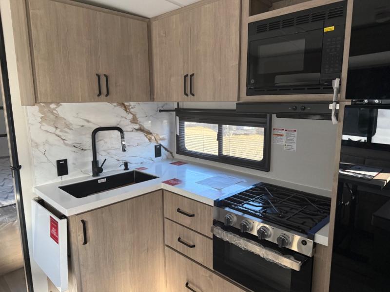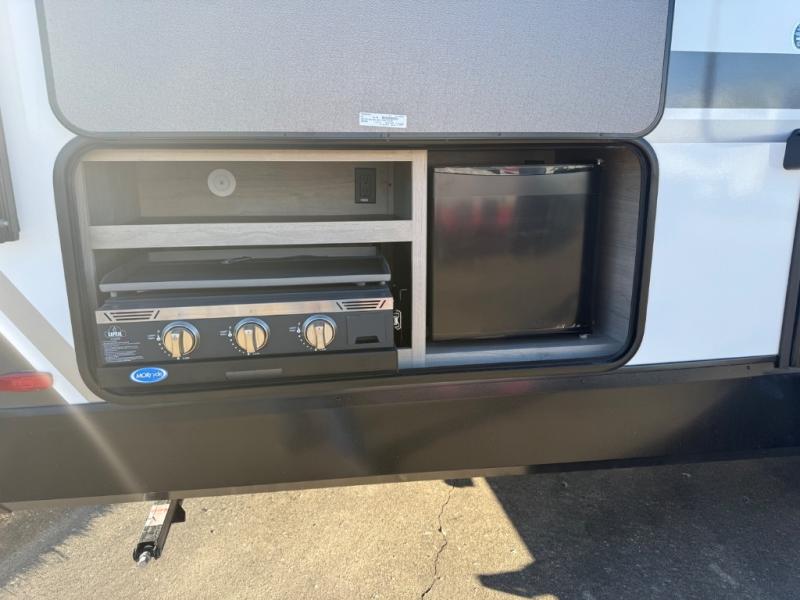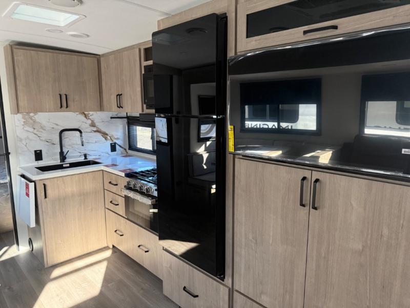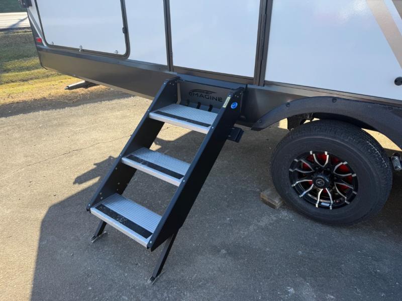Where will you go with this Imagine travel trailer? The possibilities are endless! You can take your family on an exciting excursion because this trailer has enough sleeping space for everyone with a 60" x 80" queen bed in the private bedroom, a U-shaped dinette and tri-fold sofa in the main living area, and there is a set of 47" x 76" bunk beds with privacy curtains in the rear corner. You can come and go as you please with two entry doors, and the outdoor griddle and refrigerator will be fun to use when the weather is nice. The flip-up countertop extension will make it easier to prepare delicious home cooked meals and the shoe storage area helps to keep things neat and tidy.