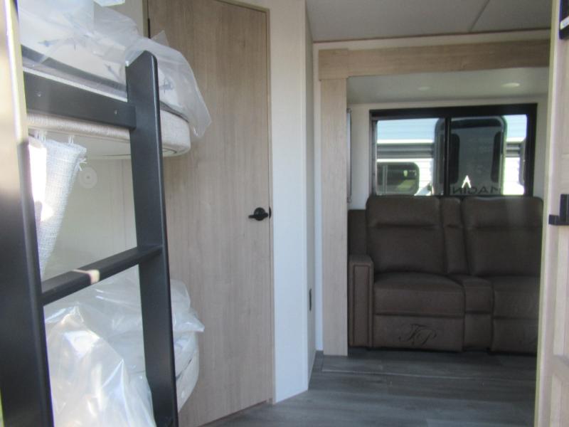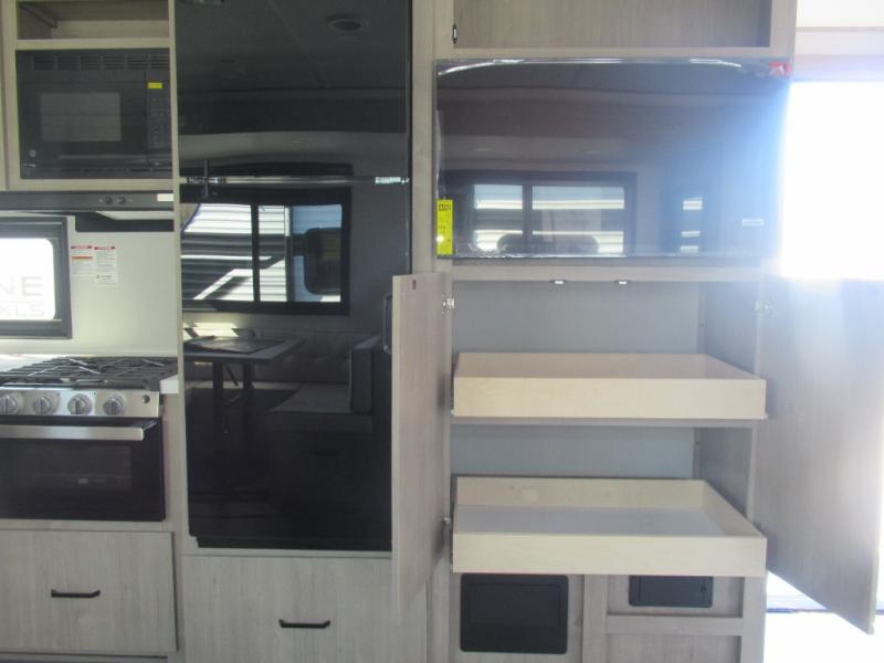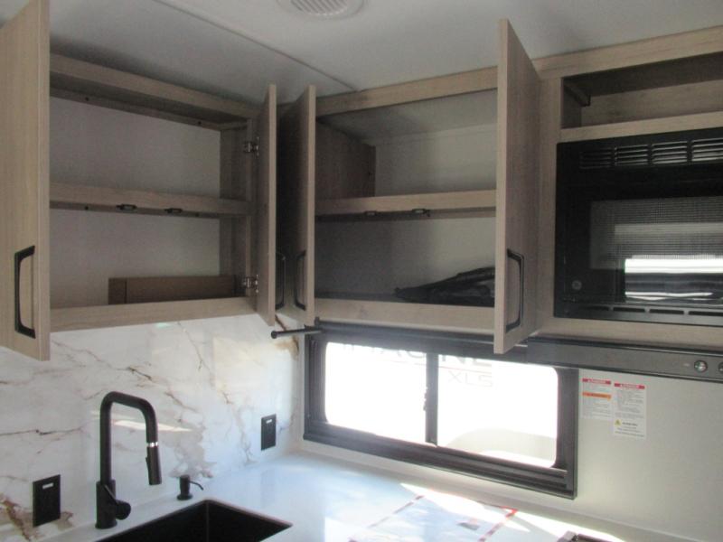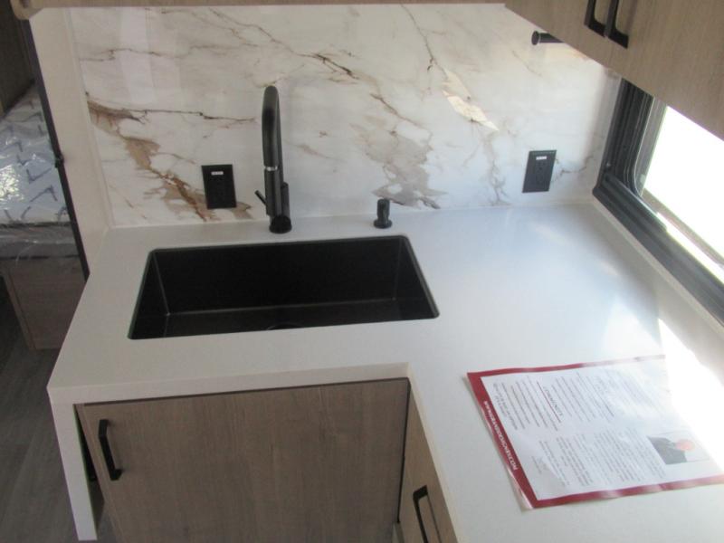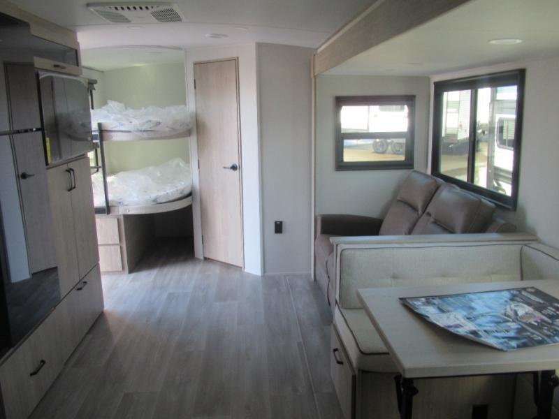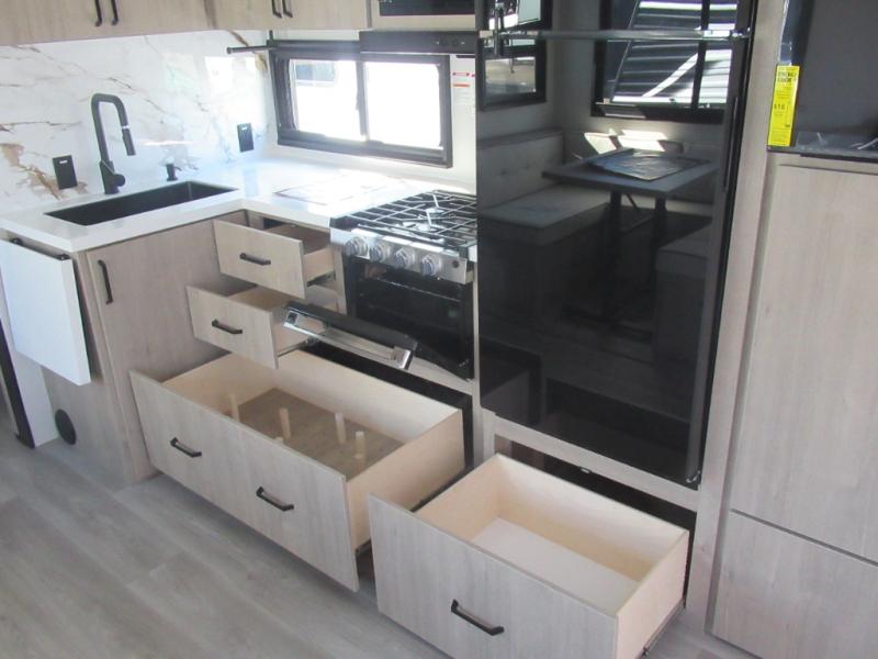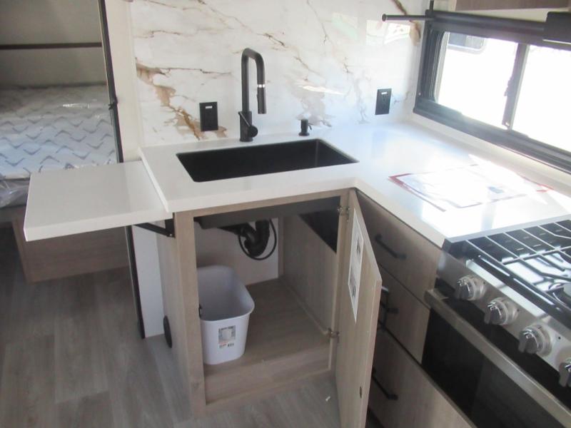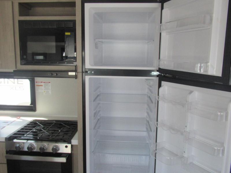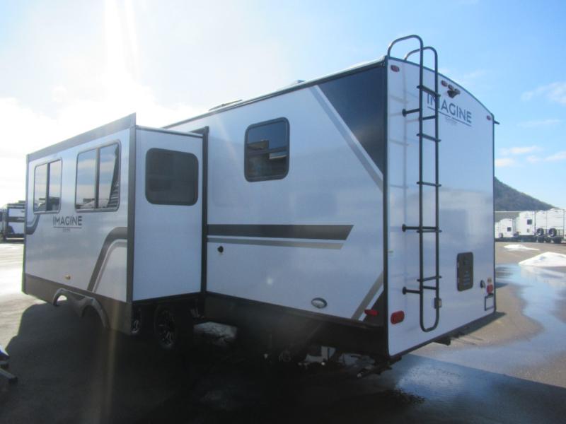 Where will you go with this Imagine travel trailer? The possibilities are endless! You can take your family on an exciting excursion because this trailer has enough sleeping space for everyone with a 60" x 80" queen bed in the private bedroom, a U-shaped dinette and tri-fold sofa in the main living area, and there is a set of 47" x 76" bunk beds with privacy curtains in the rear corner. You can come and go as you please with two entry doors, and the outdoor griddle and refrigerator will be fun to use when the weather is nice. The flip-up countertop extension will make it easier to prepare delicious home cooked meals and the shoe storage area helps to keep things neat and tidy.