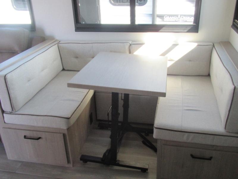 Just imagine leaving the world behind and secluding yourself away with your favorite people in your Grand Design Imagine travel trailer! The Imagine has been designed to enjoy camping and includes a high-capacity furnace, a heated and enclosed underbelly with suspended tanks, a designated heat duct to the subfloor, and a high-density roof insulation with attic vent. You'll have a large panoramic window to let natural lighting in and an adjustable Power Awning with LED Lights for those night gatherings. The exclusive drop-frame pass-through storage compartment is going to allow you to bring along lots of equipment, and the universal docking station is an all-in-one location for utilities and hook-ups. You'll also have oversized tank capacities so that you can fill and empty your tanks less often.