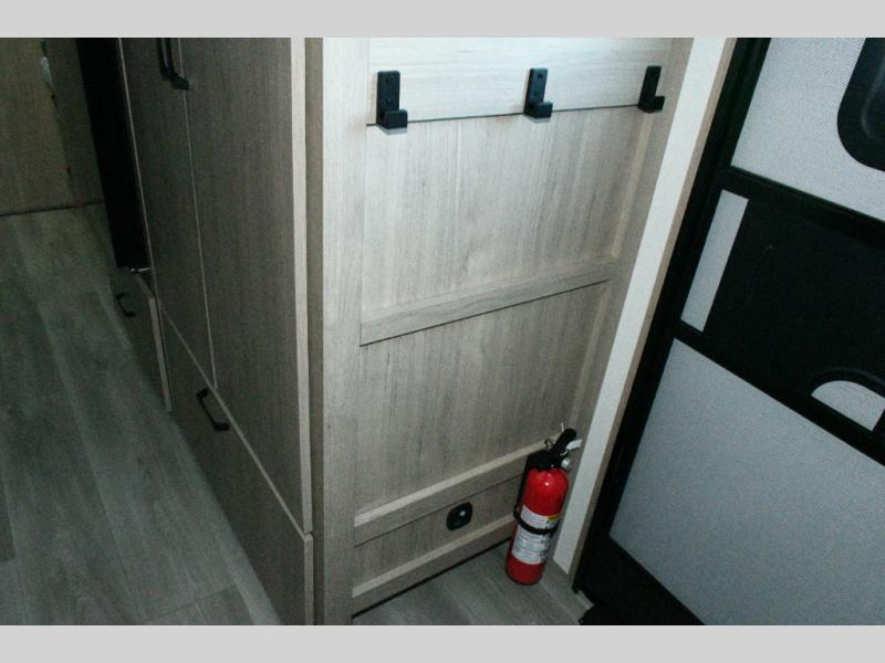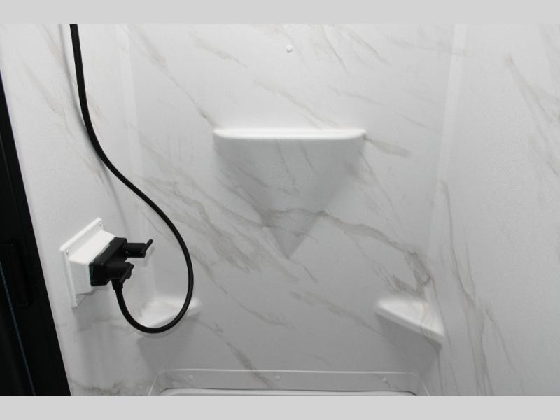 What I liked most: Bunk area area lifts up for additional storage which is very unique. Place for shoes. The bathroom shower surround has a brick molded design look.