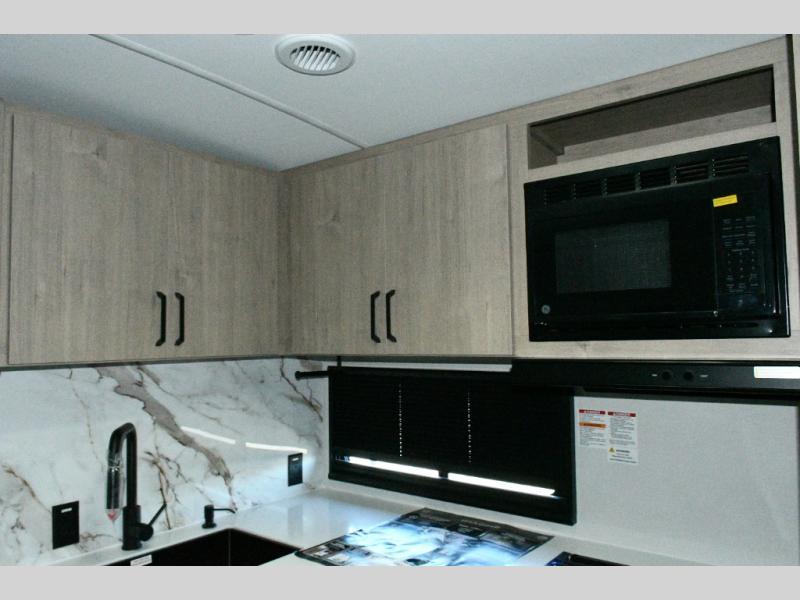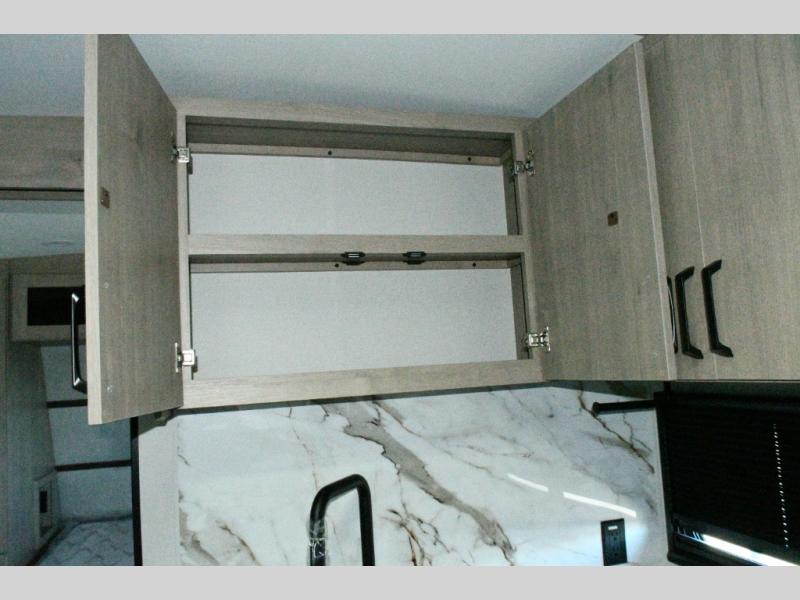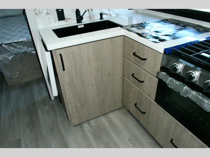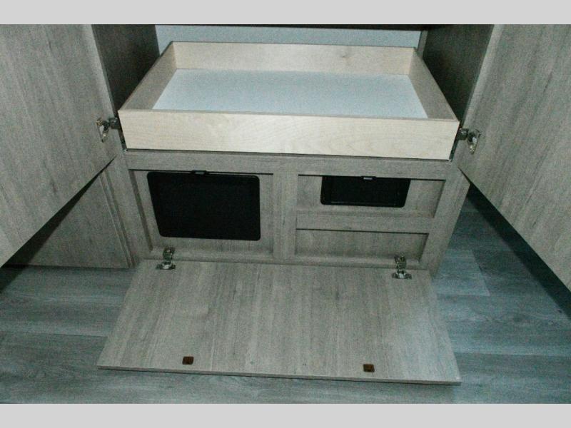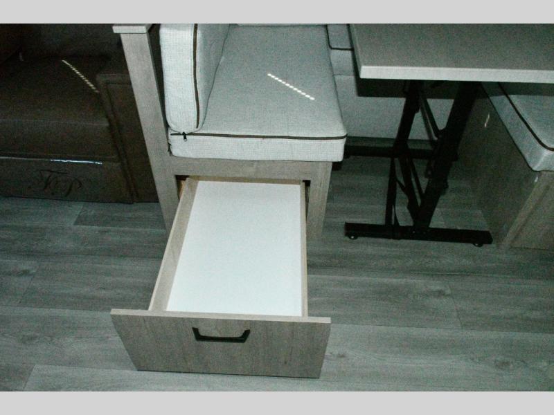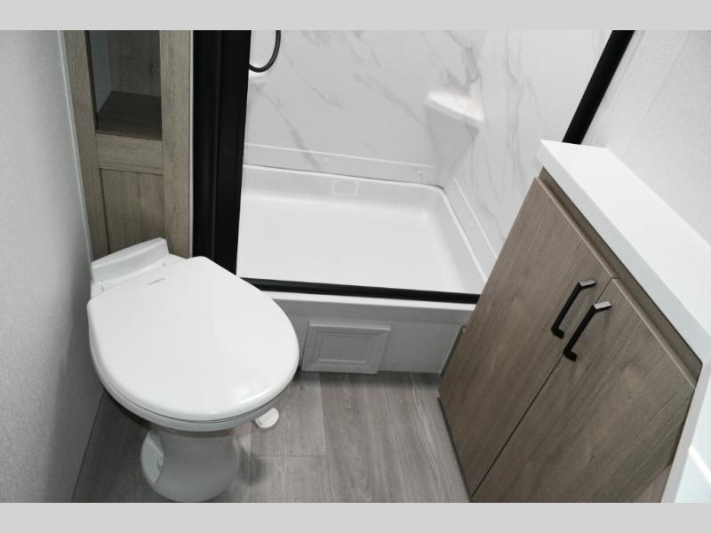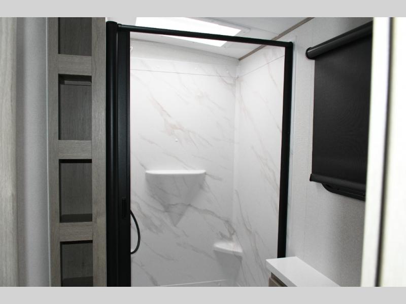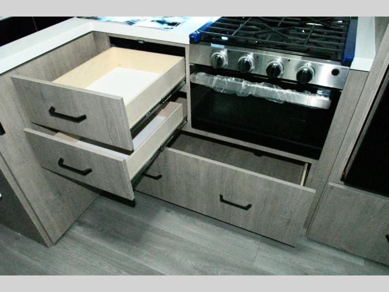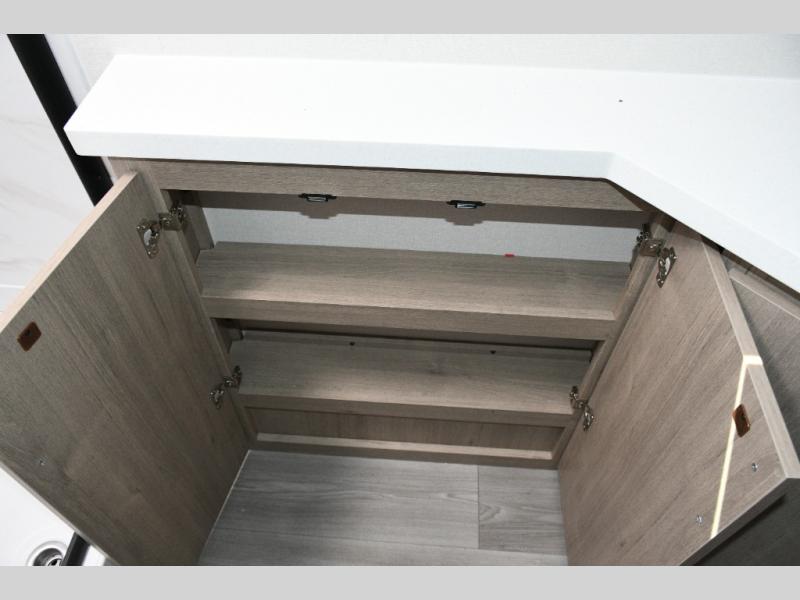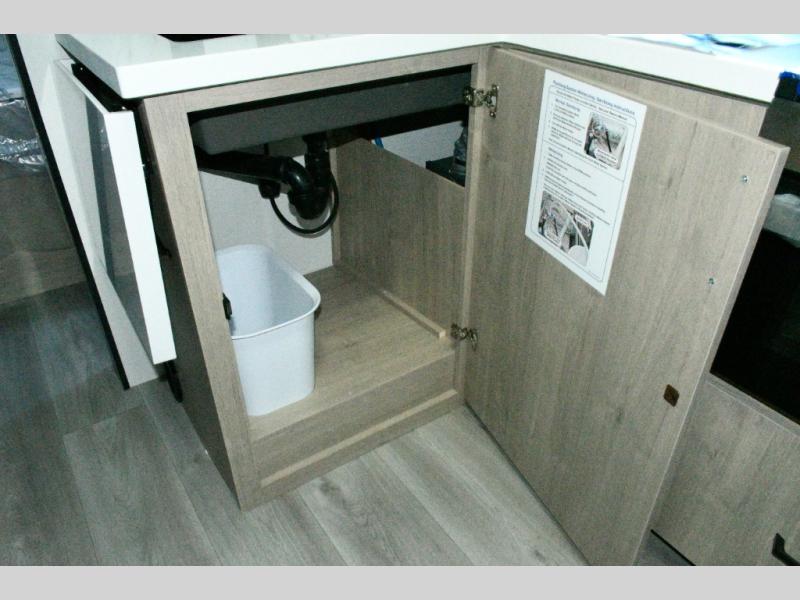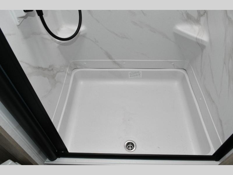 The exclusive drop-frame design gives you an enormous pass-through storage area for all your outdoor gear. A universal docking station provides all-in-one utility hookups, keeping everything neat and simple. Built with Grand Design’s quality-first approach, this trailer features laminated aluminum framing, strong TPO roof membrane, and oversized holding tanks so you can stay off-grid longer.