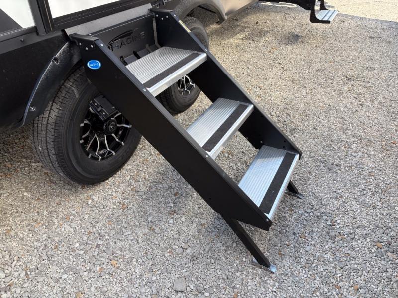 Just imagine leaving the world behind and secluding yourself away with your favorite people in your Grand Design Imagine travel trailer! The Imagine has been designed to enjoy camping and includes a high-capacity furnace, a heated and enclosed underbelly with suspended tanks, a designated heat duct to the subfloor, and a high-density roof insulation with attic vent. You'll have a large panoramic window to let natural lighting in and an adjustable Power Awning with LED Lights for those night gatherings. The exclusive drop-frame pass-through storage compartment is going to allow you to bring along lots of equipment, and the universal docking station is an all-in-one location for utilities and hook-ups. You'll also have oversized tank capacities so that you can fill and empty your tanks less often.