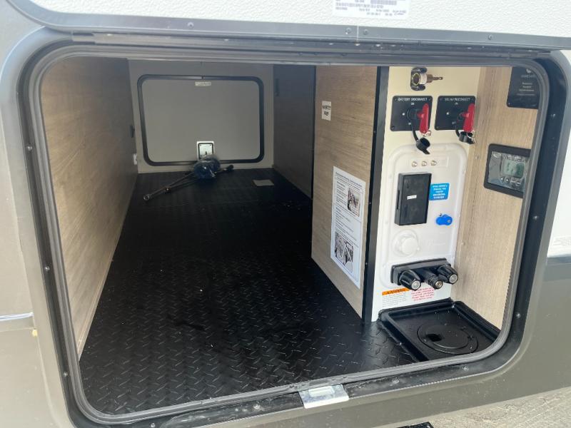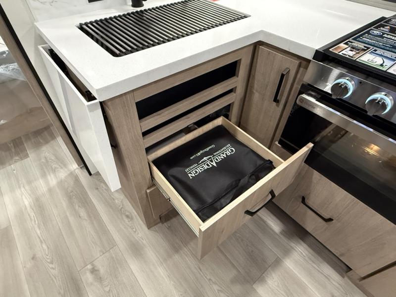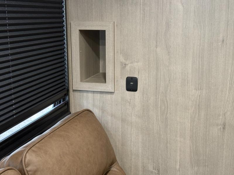 Just imagine leaving the world behind and secluding yourself away with your favorite people in your Grand Design Imagine travel trailer! The Imagine has been designed to enjoy camping and includes a high-capacity furnace, a heated and enclosed underbelly with suspended tanks, a designated heat duct to the subfloor, and a high-density roof insulation with attic vent. You'll have a large panoramic window to let natural lighting in and an adjustable Power Awning with LED Lights for those night gatherings. The exclusive drop-frame pass-through storage compartment is going to allow you to bring along lots of equipment, and the universal docking station is an all-in-one location for utilities and hook-ups. You'll also have oversized tank capacities so that you can fill and empty your tanks less often.