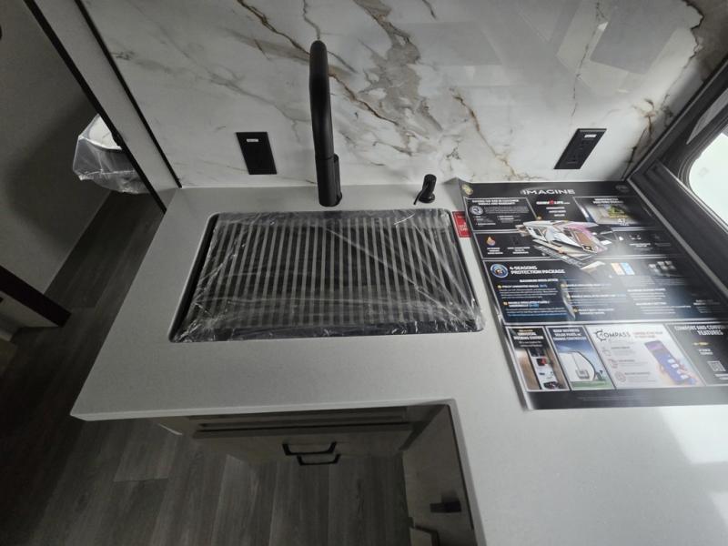 Just imagine leaving the world behind and secluding yourself away with your favorite people in your Grand Design Imagine travel trailer! The Imagine has been designed to enjoy camping and includes a high-capacity furnace, a heated and enclosed underbelly with suspended tanks, a designated heat duct to the subfloor, and a high-density roof insulation with attic vent. You'll have a large panoramic window to let natural lighting in and an adjustable Power Awning with LED Lights for those night gatherings. The exclusive drop-frame pass-through storage compartment is going to allow you to bring along lots of equipment, and the universal docking station is an all-in-one location for utilities and hook-ups. You'll also have oversized tank capacities so that you can fill and empty your tanks less often.