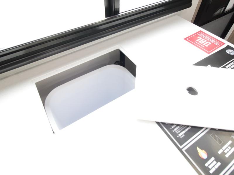 Additional features include an exclusive drop-frame pass-through storage compartment for bulky gear, a universal docking station for easy hookups, and oversized holding tanks that allow you to camp longer with fewer stops.