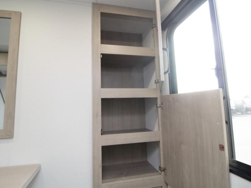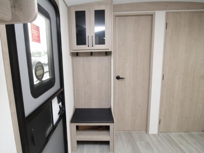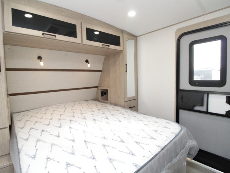 The Grand Design Imagine 2810BH travel trailer is designed for families and couples who want space, comfort, and versatility on every trip. At the front of the trailer, a private master bedroom features a 60" x 80" queen bed and dual wardrobes for convenient storage. A dedicated entry door in the bedroom allows for added privacy and easy access without disturbing the rest of the coach.