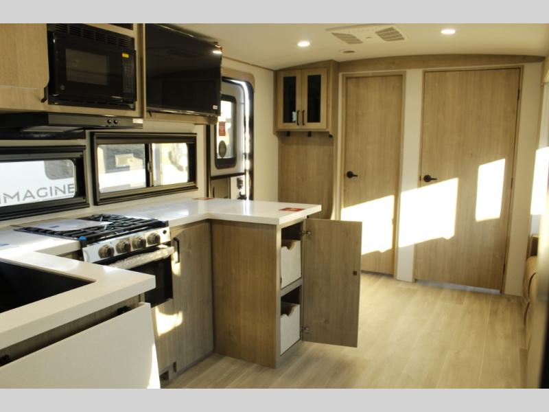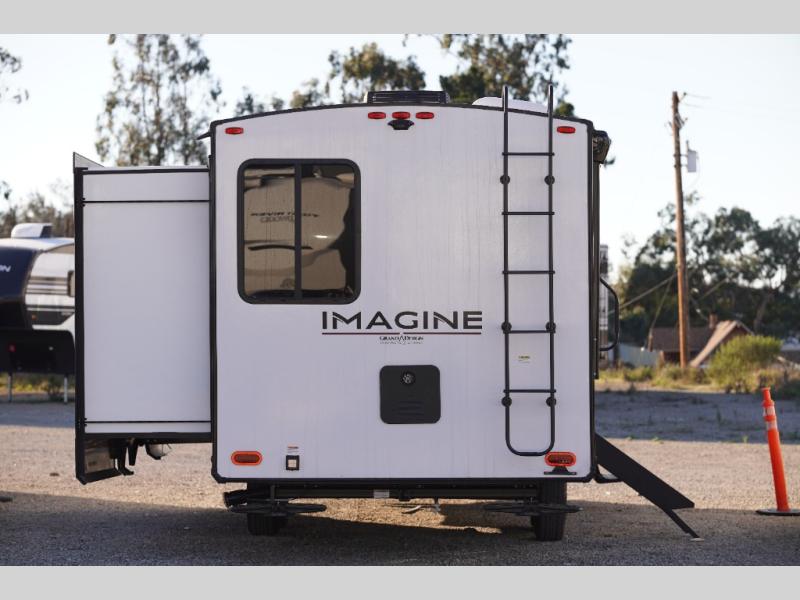 Just imagine leaving the world behind and secluding yourself away with your favorite people in your Grand Design Imagine travel trailer! The Imagine has been designed to enjoy camping and includes a high-capacity furnace, a heated and enclosed underbelly with suspended tanks, a designated heat duct to the subfloor, and a high-density roof insulation with attic vent. You'll have a large panoramic window to let natural lighting in and an adjustable Power Awning with LED Lights for those night gatherings. The exclusive drop-frame pass-through storage compartment is going to allow you to bring along lots of equipment, and the universal docking station is an all-in-one location for utilities and hook-ups. You'll also have oversized tank capacities so that you can fill and empty your tanks less often.