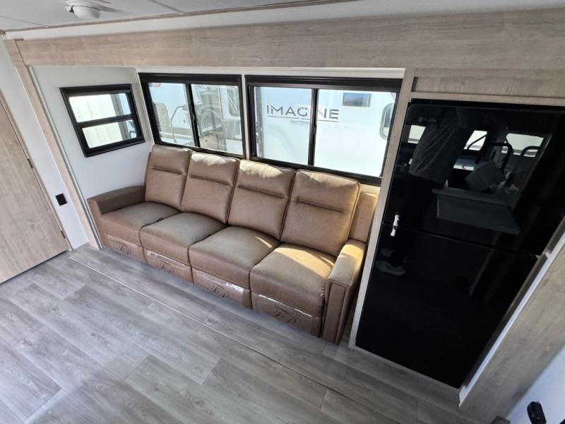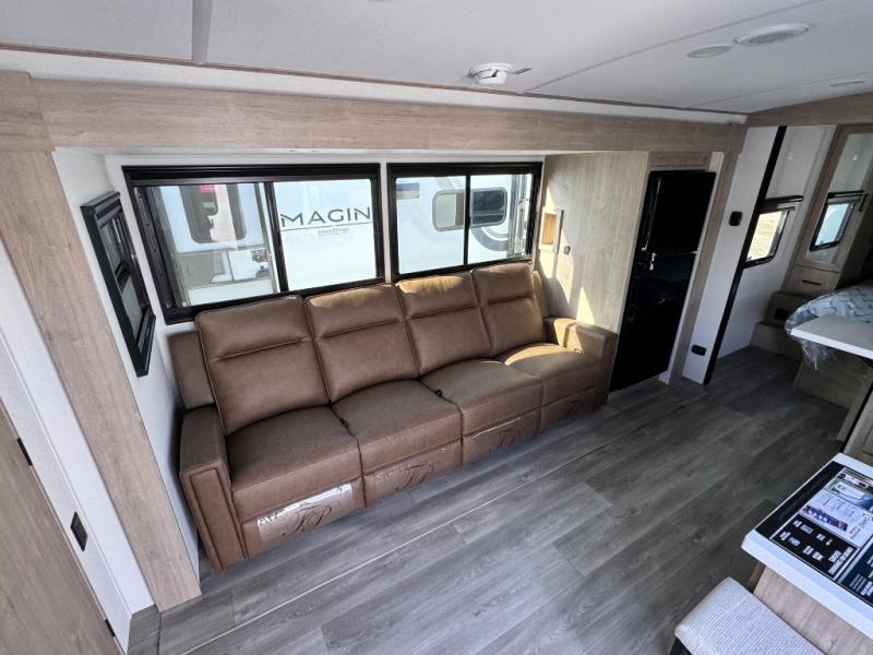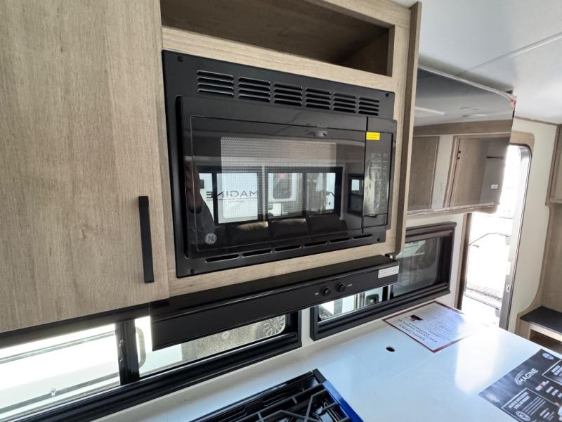 Just imagine leaving the world behind and secluding yourself away with your favorite people in your Grand Design Imagine travel trailer! The Imagine has been designed to enjoy camping and includes a high-capacity furnace, a heated and enclosed underbelly with suspended tanks, a designated heat duct to the subfloor, and a high-density roof insulation with attic vent. You'll have a large panoramic window to let natural lighting in and an adjustable Power Awning with LED Lights for those night gatherings. The exclusive drop-frame pass-through storage compartment is going to allow you to bring along lots of equipment, and the universal docking station is an all-in-one location for utilities and hook-ups. You'll also have oversized tank capacities so that you can fill and empty your tanks less often.