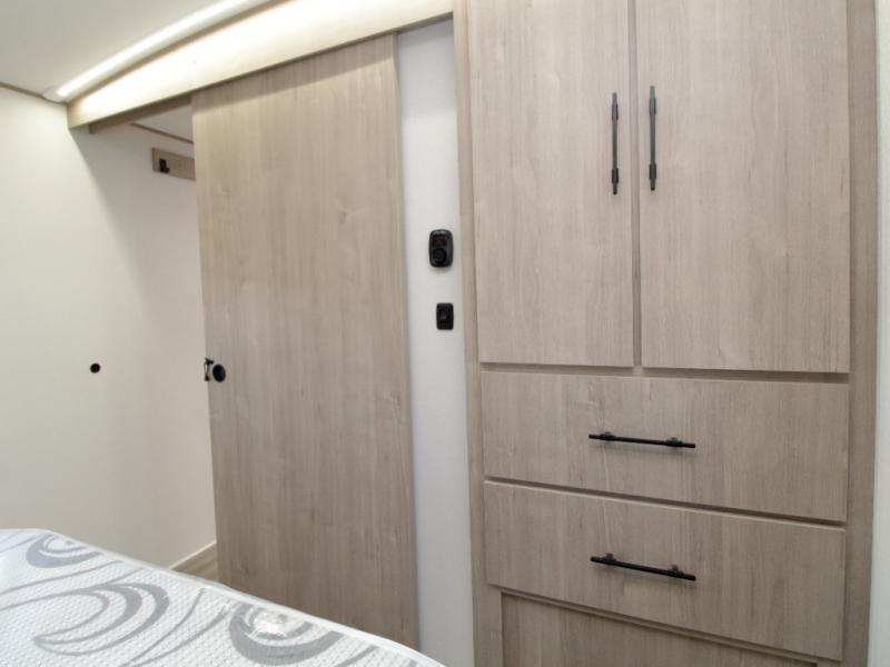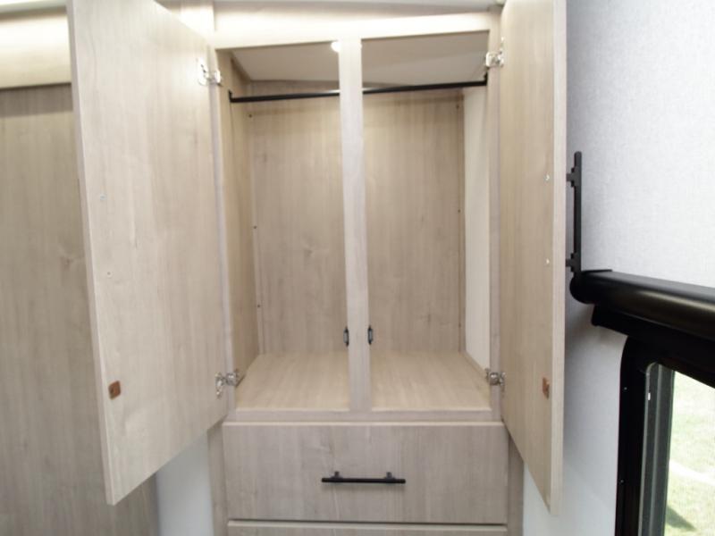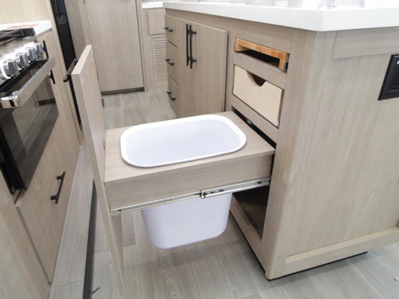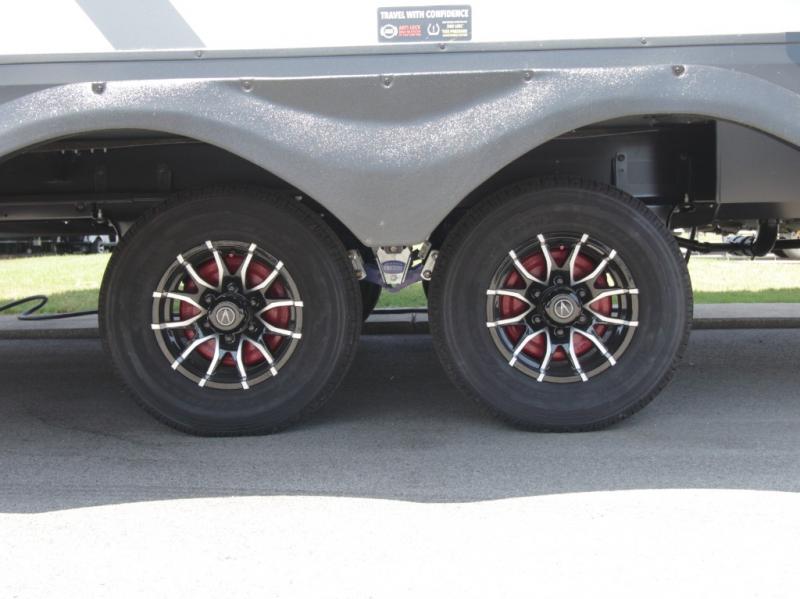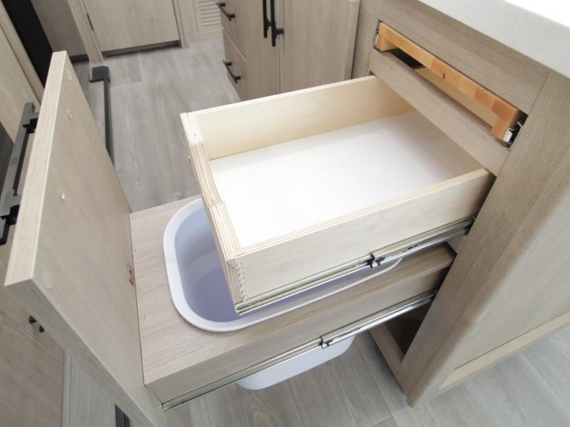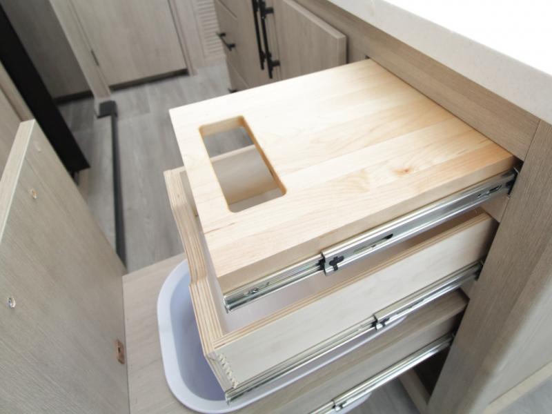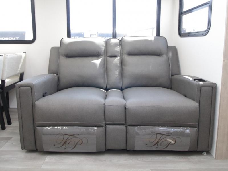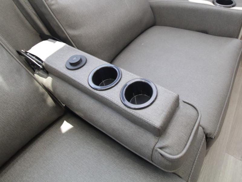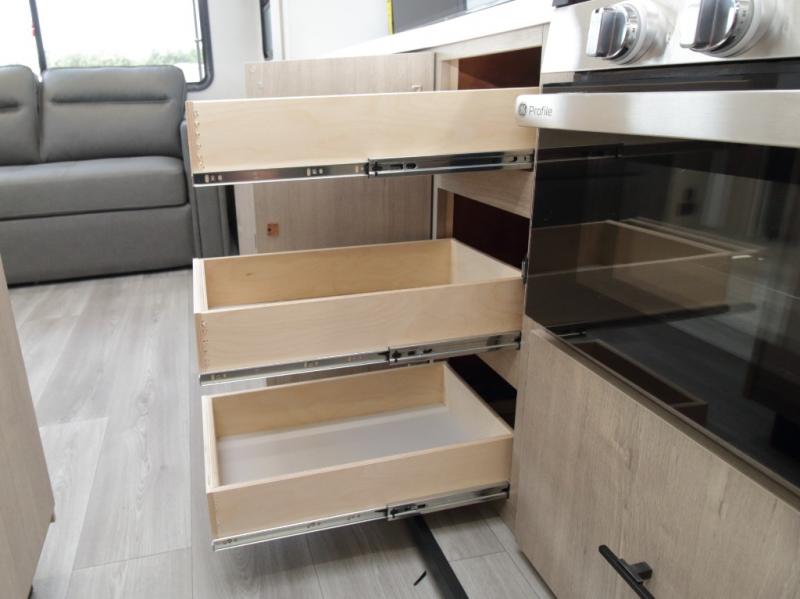 Outdoors, extend your living space under the two power awnings, hook up a TV with the exterior coax connection, and fire up your grill using the LP quick connect.