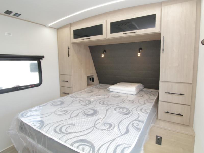 Every Imagine travel trailer is designed for extended-season camping, featuring a high-capacity furnace, heated and enclosed underbelly with suspended tanks, and high-density roof insulation with attic vent. With 81" radius ceilings, large panoramic windows, and the exclusive drop-frame pass-through storage, you’ll have both comfort and functionality wherever you go.