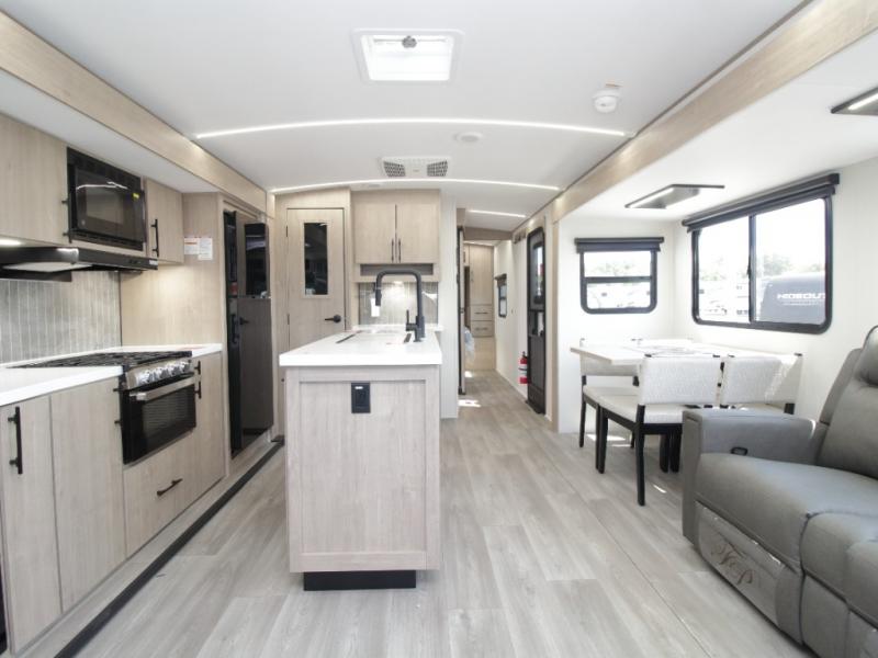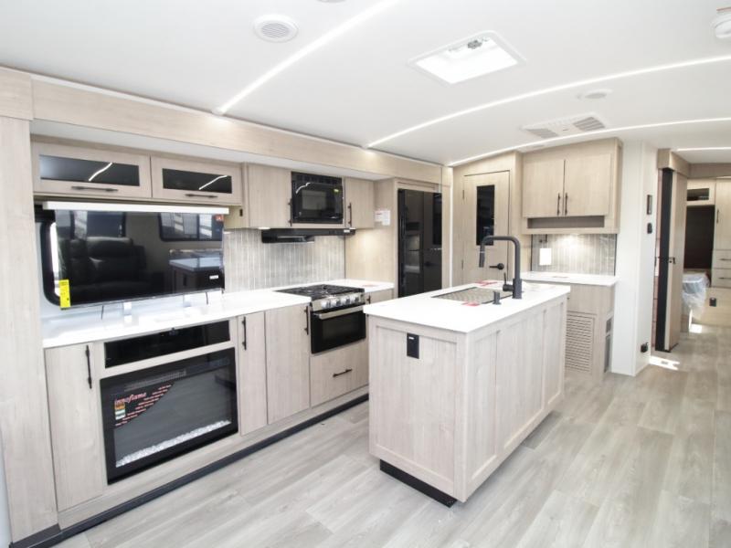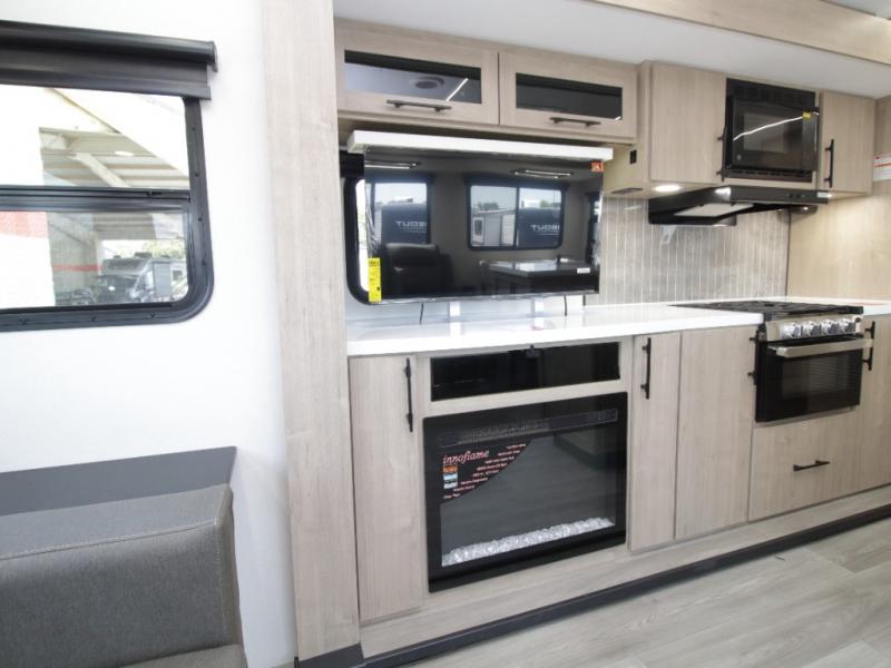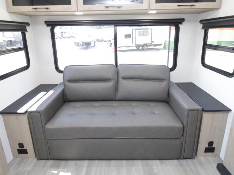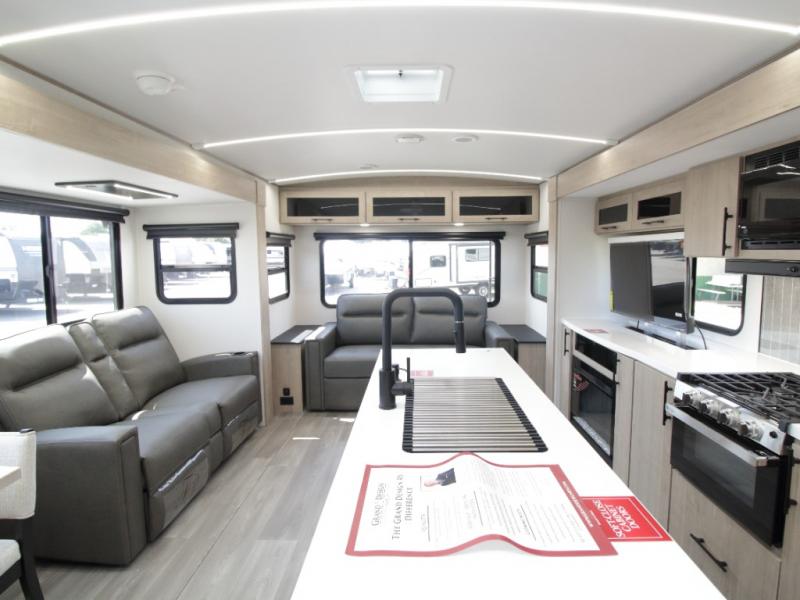 The Grand Design Imagine 2970RL is built for comfort, convenience, and memorable camping adventures. Inside, the opposing slide-outs create a wide-open living area perfect for relaxing or entertaining. Gather around the theater seating, booth dinette, or tri-fold sofa that doubles as extra sleeping space. The entertainment center with LED HDTV and cozy fireplace is the perfect centerpiece for movie nights after a day outdoors.