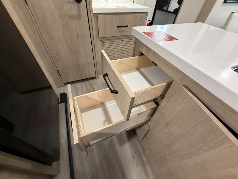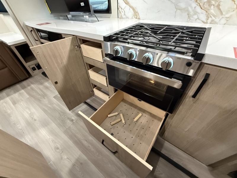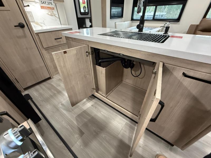 What I liked most: Rear living anywhere you look there is a great view out of the windows also dont have to twist my head around to see TV also no cabinet to hit my head on when brushing teeth.great warranty department easy to deal with just had small trim things that needed attention could of let them go but it was new.