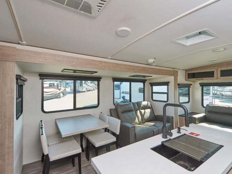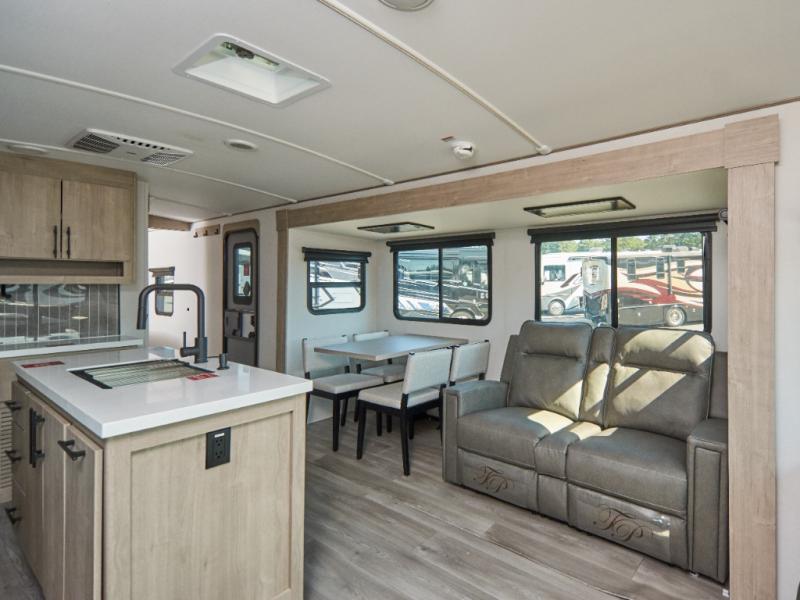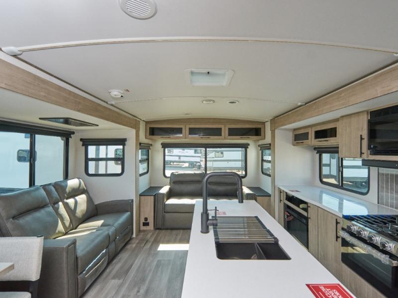 Travel in style with the Grand Design Imagine 2970RL, featuring dual slide-outs for a spacious interior and dual power awnings for ultimate outdoor comfort.