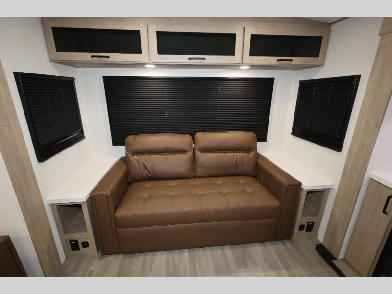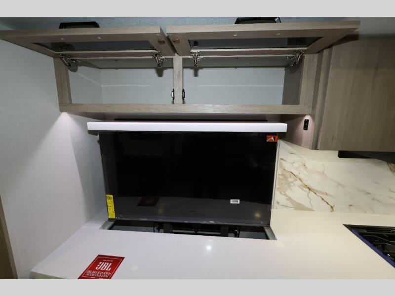What I liked most: Rear living anywhere you look there is a great view out of the windows also dont have to twist my head around to see TV also no cabinet to hit my head on when brushing teeth.great warranty department easy to deal with just had small trim things that needed attention could of let them go but it was new.