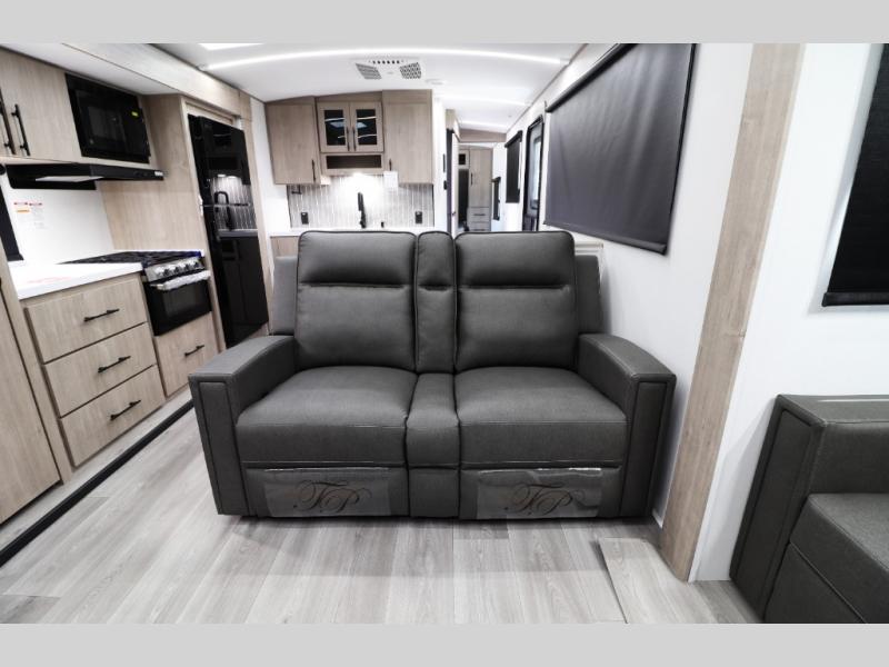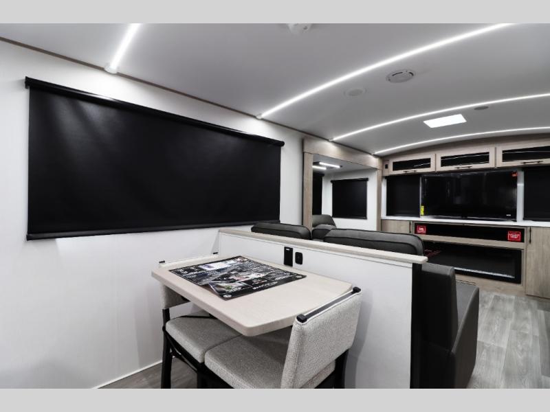 Spacious Rear Living Room with opposing tri-fold sofas and theater seating for ultimate relaxation.
