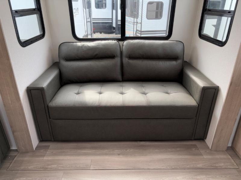 - Rear living room with opposing tri-fold sofas for extra seating and sleeping space