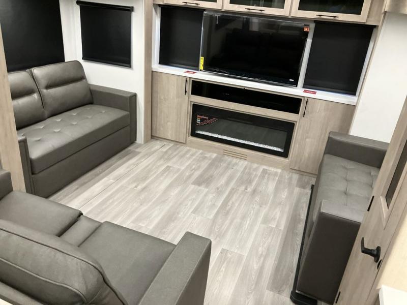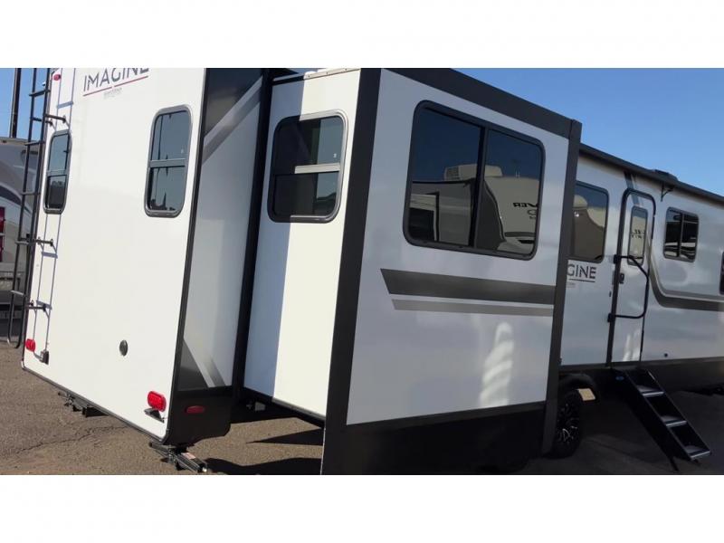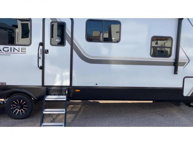 Just imagine leaving the world behind and secluding yourself away with your favorite people in your Grand Design Imagine travel trailer! The Imagine has been designed to enjoy camping and includes a high-capacity furnace, a heated and enclosed underbelly with suspended tanks, a designated heat duct to the subfloor, and a high-density roof insulation with attic vent. You'll have a large panoramic window to let natural lighting in and an adjustable Power Awning with LED Lights for those night gatherings. The exclusive drop-frame pass-through storage compartment is going to allow you to bring along lots of equipment, and the universal docking station is an all-in-one location for utilities and hook-ups. You'll also have oversized tank capacities so that you can fill and empty your tanks less often.