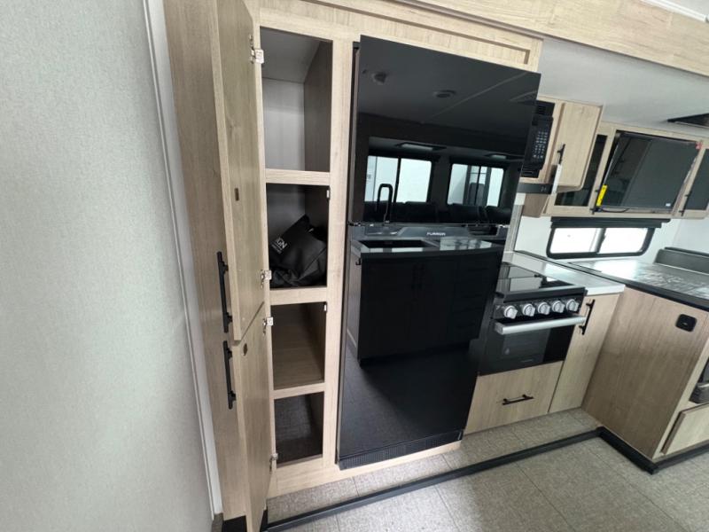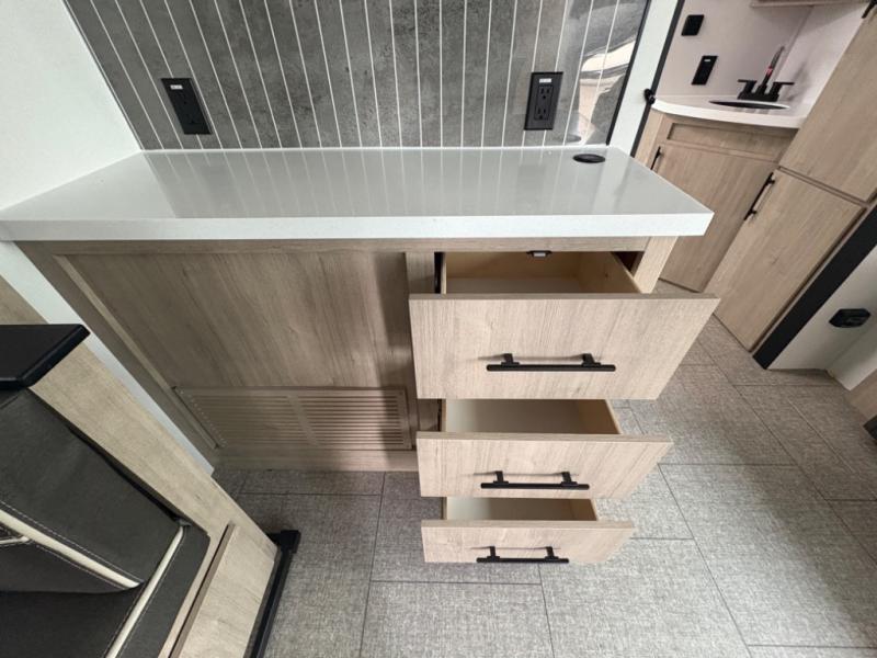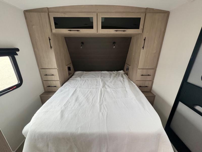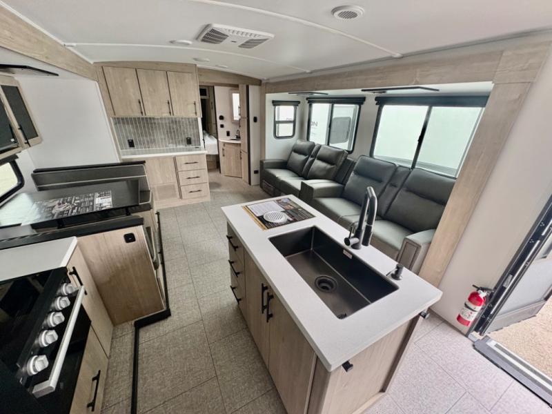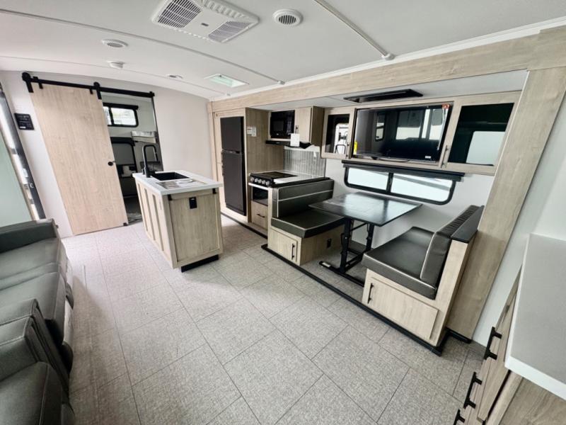 The rear bunkhouse is a standout feature — kids, guests, or overnight visitors will appreciate the dedicated sleeping zone that keeps everyone comfortable and organized. Whether it’s movie night, family meals, or a quiet morning coffee, this travel trailer’s layout accommodates it all.