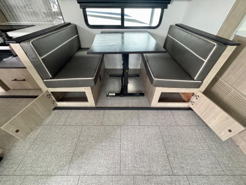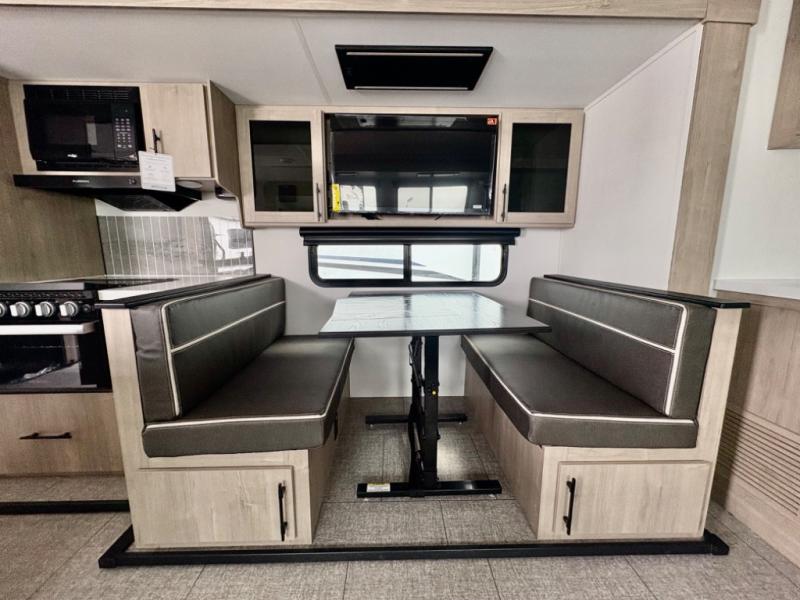 The central living area features comfortable seating that’s perfect for relaxing after a day of exploring. The convertible dinette provides a great space for meals, games, or planning your next adventure, and easily transforms into additional sleeping space when needed. The open design encourages interaction and makes day-to-day living feel natural and effortless.