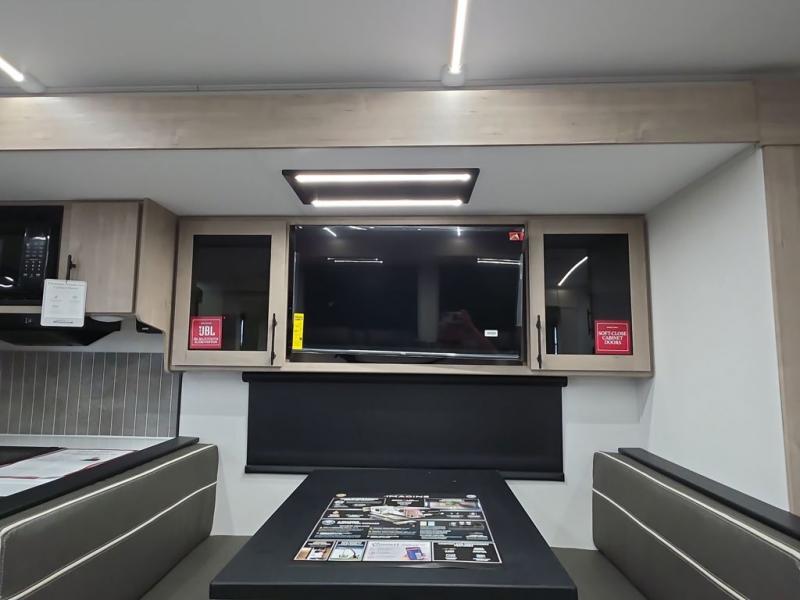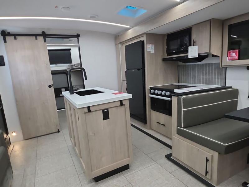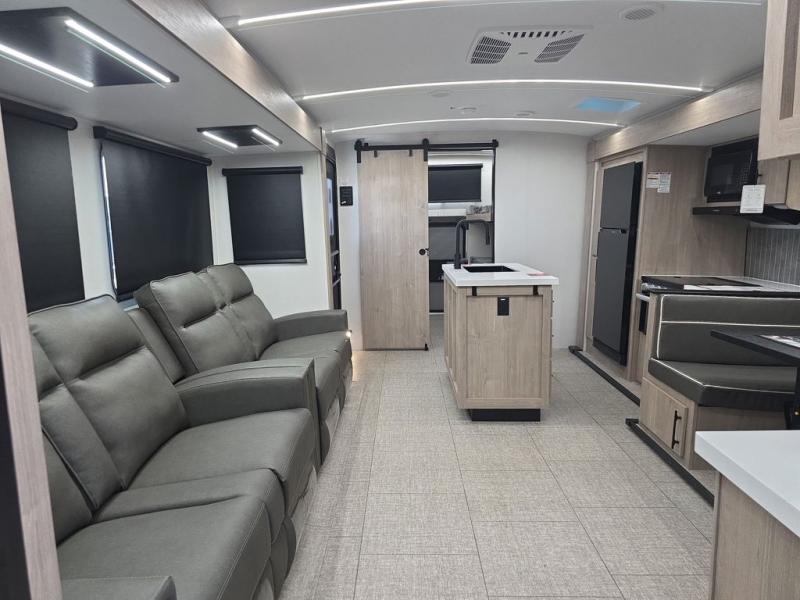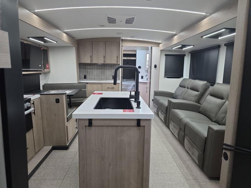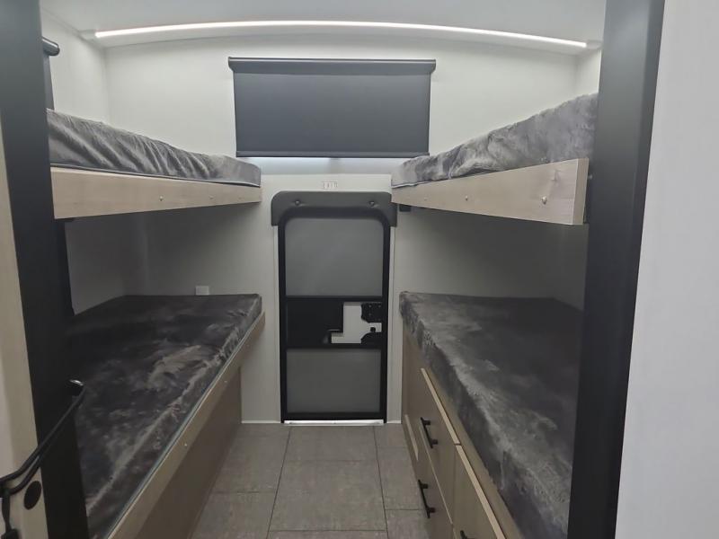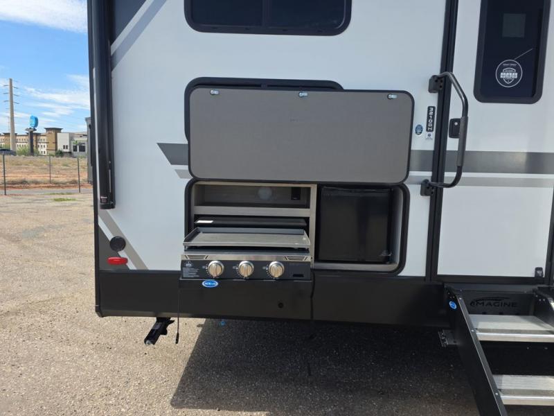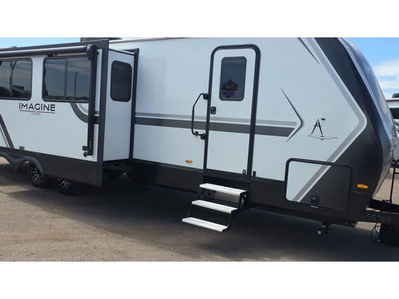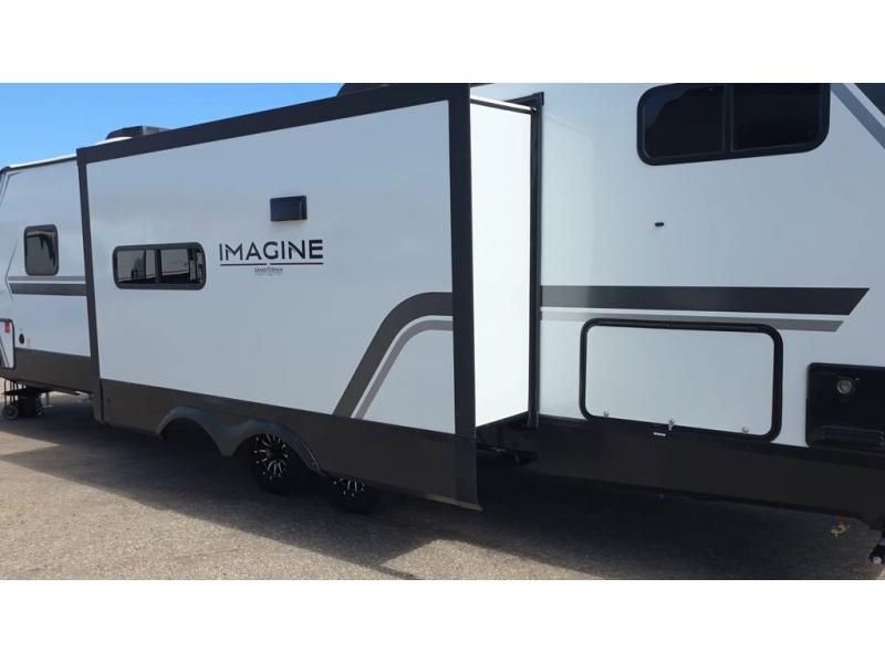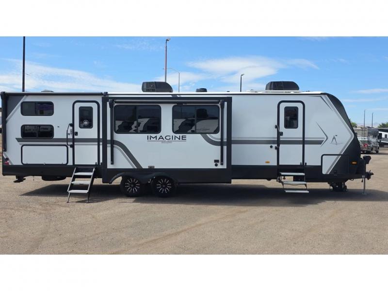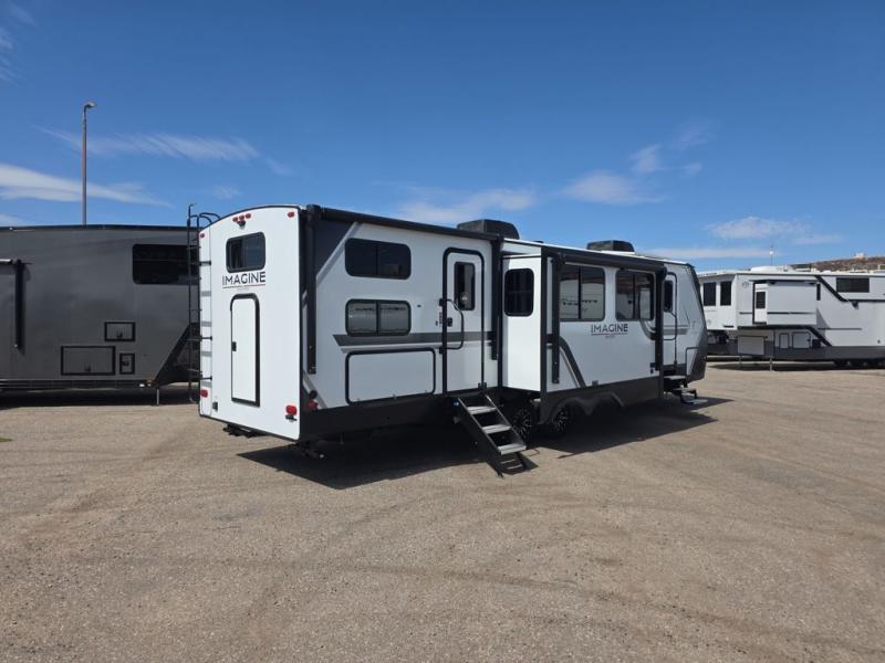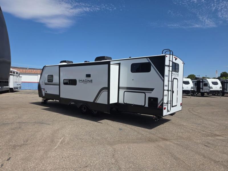 A great travel trailer for larger families or those that enjoy traveling with a few friends! This Imagine quad bunk model features two private bedrooms, with the master up front including a private entry/exit door just beyond a spacious walk-through bathroom that features a 30" x 36" walk-In shower with skylight to bring in more natural lighting each day, plus a toilet, sink and linen storage. In the kitchen, a nice island for food prep and cleaning up makes it easy to be part of the conversation in the room while you get meals ready for everyone. Speaking of food prep, how about the outside griddle and 1.6 cu. ft. refrigerator which is perfect for cooking outside, or for making late night snacks when all are enjoying the evening under the stars or in lawn chairs under one of two 9' 6" awnings with LED lighting. Your kids can bring along extra guests with the added space that a quad bunk model provides!