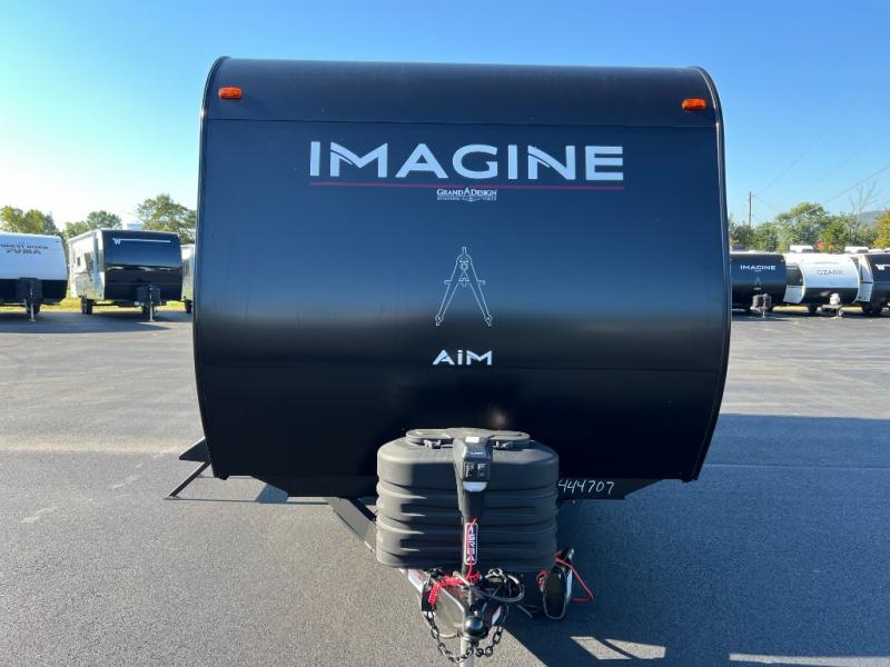 Aim for new destinations in one of these Grand Design Imagine AIM travel trailers! They are constructed to a superior standard with the 4-Seasons Protection Package that features a heated and enclosed underbelly with suspended tanks, a moisture barrier floor enclosure, a double insulated roof and front wall, and more. There is backup camera prep outside, along with a universal docking station, and a power tongue jack. You are sure to feel at home with residential cabinetry, premium window treatments, residential countertops, and a spacious walk-in shower to name a few comforts. The on-demand tankless water heater is a feature you won't want to camp without and the hi-definition LED TV will ensure you'll never go bored on rainy days. Each model also comes with four AIM packages; the Peace of Mind Package, The Ultimate Power Package, The 4-Season Protection Package, and the Solar Package!