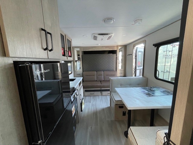 Aim for new destinations in one of these Grand Design Imagine AIM travel trailers! They are constructed to a superior standard with the 4-Seasons Protection Package that features a heated and enclosed underbelly with suspended tanks, a moisture barrier floor enclosure, a double insulated roof and front wall, and more. There is backup camera prep outside, along with a universal docking station, and a power tongue jack. You are sure to feel at home with residential cabinetry, premium window treatments, residential countertops, and a spacious walk-in shower to name a few comforts. The on-demand tankless water heater is a feature you won't want to camp without and the hi-definition LED TV will ensure you'll never go bored on rainy days. Each model also comes with four AIM packages; the Peace of Mind Package, The Ultimate Power Package, The 4-Season Protection Package, and the Solar Package!