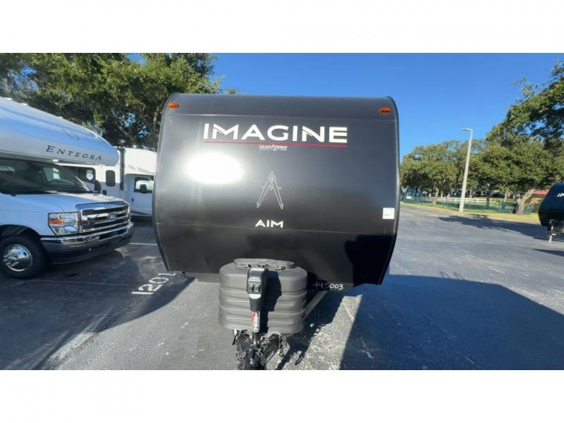Aim for new destinations in one of these Grand Design Imagine AIM travel trailers! They are constructed to a superior standard with the 4-Seasons Protection Package that features a heated and enclosed underbelly with suspended tanks, a moisture barrier floor enclosure, a double insulated roof and front wall, and more. There is backup camera prep outside, along with a universal docking station, and a power tongue jack. You are sure to feel at home with residential cabinetry, premium window treatments, residential countertops, and a spacious walk-in shower to name a few comforts. The on-demand tankless water heater is a feature you won't want to camp without and the hi-definition LED TV will ensure you'll never go bored on rainy days. Each model also comes with four AIM packages; the Peace of Mind Package, The Ultimate Power Package, The 4-Season Protection Package, and the Solar Package!