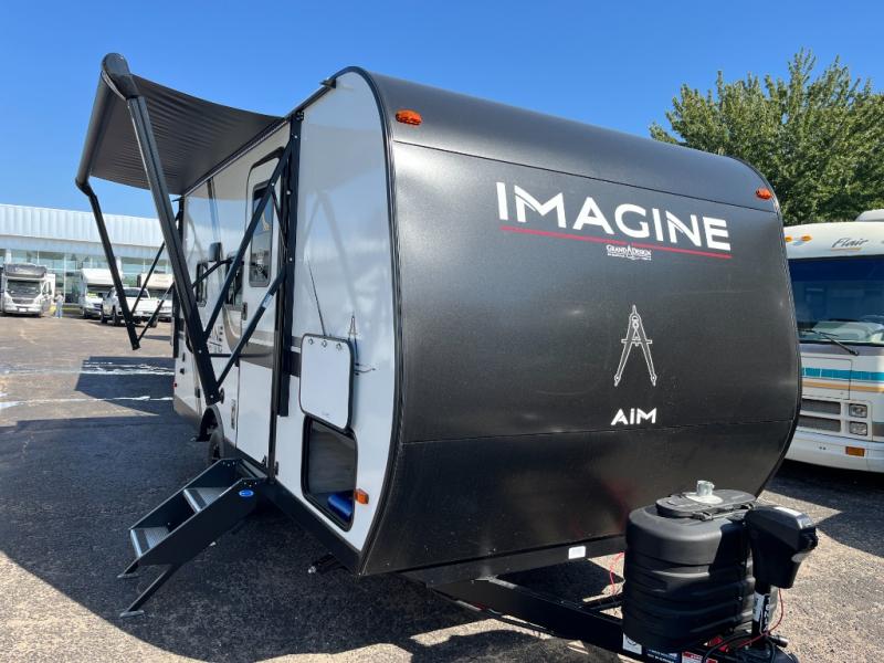 Aim for new destinations in one of these Grand Design Imagine AIM travel trailers! They are constructed to a superior standard with the 4-Seasons Protection Package that features a heated and enclosed underbelly with suspended tanks, a moisture barrier floor enclosure, a double insulated roof and front wall, and more. There is backup camera prep outside, along with a universal docking station, and a power tongue jack. You are sure to feel at home with residential cabinetry, premium window treatments, residential countertops, and a spacious walk-in shower to name a few comforts. The on-demand tankless water heater is a feature you won't want to camp without and the hi-definition LED TV will ensure you'll never go bored on rainy days. Each model also comes with four AIM packages; the Peace of Mind Package, The Ultimate Power Package, The 4-Season Protection Package, and the Solar Package!