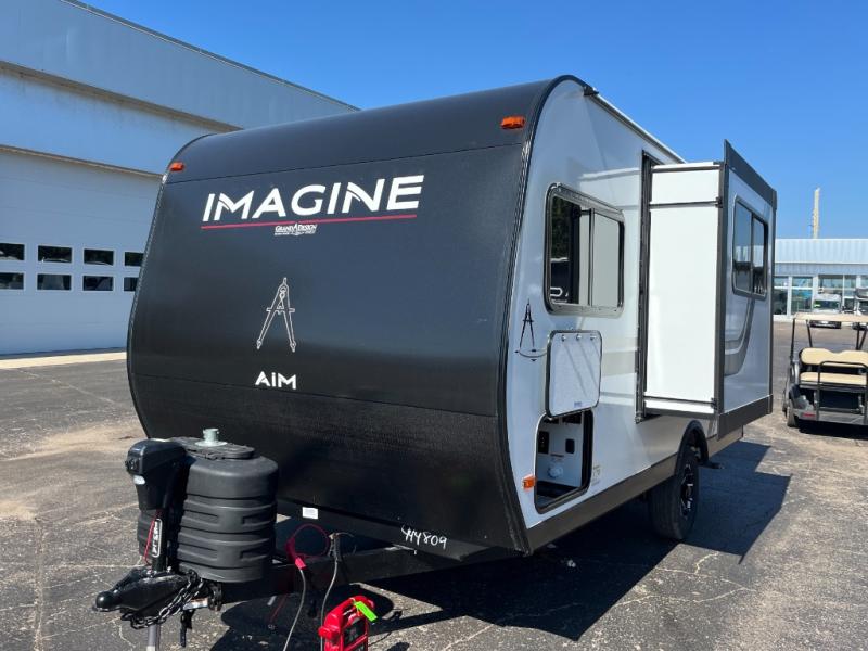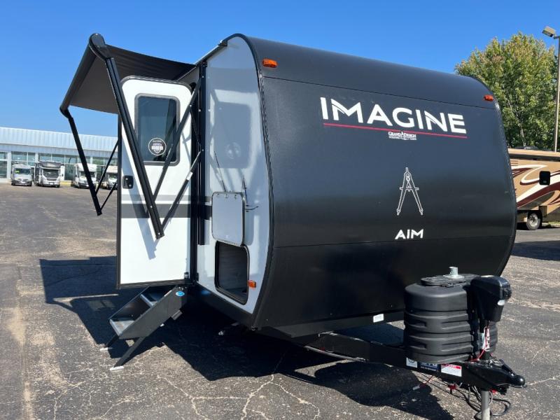 Aim for new destinations in one of these Grand Design Imagine AIM travel trailers! They are constructed to a superior standard with the 4-Seasons Protection Package that features a heated and enclosed underbelly with suspended tanks, a moisture barrier floor enclosure, a double insulated roof and front wall, and more. There is backup camera prep outside, along with a universal docking station, and a power tongue jack. You are sure to feel at home with residential cabinetry, premium window treatments, residential countertops, and a spacious walk-in shower to name a few comforts. The on-demand tankless water heater is a feature you won't want to camp without and the hi-definition LED TV will ensure you'll never go bored on rainy days. Each model also comes with four AIM packages; the Peace of Mind Package, The Ultimate Power Package, The 4-Season Protection Package, and the Solar Package!